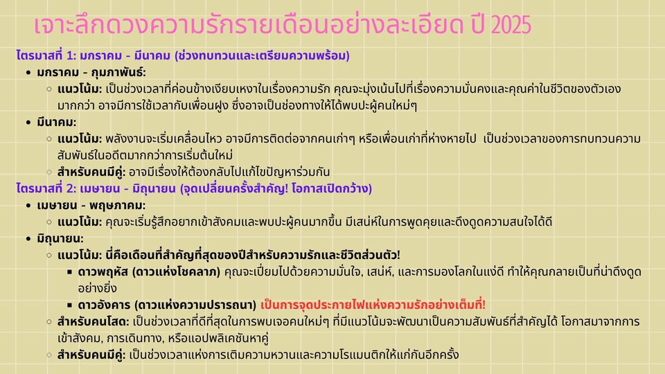 ดูดวง(ความรัก,การเงิน,การงาน,ครอบครัว) พร้อมบอกแต่ละเดือนจะเป็นอย่างไรในปีนั้นๆ (แพ็กเกจ A)