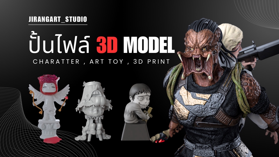 ให้บริการออกแบบและสร้างสรรค์โมเดล 3 มิติ สำหรับงานพิมพ์ 3D โดยมีรูปแบบการให้บริการดังนี้ • Arttoy / Character (รายละเอียดน้อย) : เหมาะสำหรับงานที่ไม่ซับซ้อน ใช้เวลาทำงานสั้น เหมาะกับงานสะสมหรืองานทดลองพิมพ์ • Anime / Character (รายละเอียดปานกลาง) : รายละเอียดชัดเจนและซับซ้อนมากขึ้น เหมาะสำหรับงานสะสมและงานแสดงผลงาน • Character / Anime / ลายไทย (รายละเอียดสูง) : รายละเอียดซับซ้อน เหมาะสำหรับงานคุณภาพสูง สิ่งที่ลูกค้าจะได้รับ • ไฟล์สำหรับพิมพ์ 3D (เช่น STL, OBJ) • ภาพ Render ตัวอย่างจากหลายมุมเพื่อการตรวจสอบ บริการเพิ่มเติม • Render ภาพความละเอียดสูง • บริการลงสีหรือใส่ Material เพื่อใช้ในการนำเสนอ • การปรับแก้ไขงานได้ สูงสุด 3 ครั้งโดยไม่คิดค่าใช้จ่าย • หากต้องการแก้ไขเพิ่มเติมเกินจาก 3 ครั้ง คิดค่าบริการเริ่มต้นครั้งละ 500 บาท (ขึ้นอยู่กับความซับซ้อนของการแก้ไข) ขั้นตอนการทำงาน 1. ลูกค้าส่งต้นแบบ / Reference / ไฟล์ที่ต้องการ / รายละเอียดงานต่างๆ 2. กรณีต้องมีการออกแบบเพิ่มเติม จะมีการอัปเดตงานให้ตรวจสอบก่อน 3. ส่งภาพตัวอย่างงาน (4–5 มุม) เพื่อการตรวจสอบ 4. ปรับแก้ไขงานได้ตามเงื่อนไข 5. ส่งไฟล์ขั้นสุดท้ายที่พร้อมสำหรับการพิมพ์ 3D ราคาและระยะเวลา • งานทั่วไป เริ่มต้นที่ 2,500 บาท • งานที่มีรายละเอียดซับซ้อน ราคาขึ้นอยู่กับความยากและความละเอียดของงาน • ระยะเวลาการทำงานเฉลี่ย 3–7 วันทำการ (งานละเอียดมากอาจใช้เวลานานกว่านี้) จุดเด่นของบริการ • มีประสบการณ์และผลงานขายใน fastwork มาแล้วกว่า 120+ ชิ้น • รับประกันคุณภาพงาน ปรับแก้ตามเงื่อนไขจนกว่าลูกค้าจะพึงพอใจ • เหมาะทั้งงานสะสม งานจัดแสดง และงานพิมพ์จริง