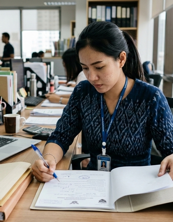 งาน เดินเอกสารแทนบุคคลที่ไม่สะดวกเดินทาง คือ การรับผิดชอบนำส่งหรือดำเนินการเกี่ยวกับเอกสารแทนผู้อื่น เช่น ผู้บริหาร พนักงาน หรือบุคคลภายนอก ที่ไม่สามารถไปดำเนินการเองได้ โดยมีรายละเอียดงานดังนี้: 1. รับมอบหมายเอกสารจากบุคคลหรือแผนกที่ไม่สะดวกเดินทางอาจเป็นเอกสารราชการ, เอกสารทางบัญชี, สัญญา, ใบมอบอำนาจ ฯลฯ 2. นำเอกสารไปส่งหรือดำเนินเรื่องในสถานที่ต่าง ๆหน่วยงานราชการ (เช่น เทศบาล, ที่ดิน, สรรพากร)ธนาคารบริษัทคู่ค้า สถานที่ราชการหรือเอกชนตามที่ได้รับมอบหมาย 3. ดำเนินเรื่องแทนบุคคลยื่นเรื่อง, ขอรับเอกสาร, ชำระค่าธรรมเนียม ฯลฯ อาจใช้ใบมอบอำนาจในการยืนยันสิทธิแทน 4. จัดเก็บหลักฐานการดำเนินการใบเสร็จ, ใบรับเอกสาร, ใบลงนามรับ–ส่ง เพื่อยืนยันว่าดำเนินการแล้วรายงานผลให้ผู้มอบหมายทราบ 5. รักษาความลับของเอกสารต้องมีความรับผิดชอบสูง เนื่องจากมักเกี่ยวข้องกับเอกสารสำคัญ ขั้นตอนการทำงาน 1. ลูกค้าติดต่อและแจ้งความต้องการ ระบุประเภทเอกสารและสถานที่ปลายทาง แจ้งรายละเอียด เช่น ต้องไปยื่น / รับ / ชำระเงิน ฯลฯ นัดวันรับเอกสาร พร้อมแนบเอกสารที่จำเป็น (เช่น บัตรประชาชน, หนังสือมอบอำนาจ) 2. ประเมินราคาและนัดวันดำเนินการ - คำนวณค่าบริการตามระยะทางและความเร่งด่วน - ลูกค้ายืนยันและชำระค่าบริการล่วงหน้าหรือมัดจำ 3. รับเอกสารจากลูกค้า - ส่งเจ้าหน้าที่ไปรับเอกสารถึงบ้าน/ที่ทำงาน หรือ - ลูกค้าส่งเอกสารทางไปรษณีย์/แมสเซนเจอร์ 4. ดำเนินการตามที่ได้รับมอบหมาย - ไปยังสถานที่ที่กำหนด (เช่น หน่วยงานราชการ, ธนาคาร, บริษัทเอกชน) - ยื่นเอกสาร, รับเอกสาร, ชำระค่าธรรมเนียม หรือประสานงานตามที่ระบุไว้ - ถ่ายภาพ/สแกนเอกสารหรือใบเสร็จเป็นหลักฐานให้ลูกค้า 5. ส่งคืนเอกสารให้ลูกค้า - นำส่งเอกสารกลับถึงมือหรือส่งผ่านไปรษณีย์ด่วน - แจ้งผลการดำเนินงานโดยละเอียด พร้อมแนบหลักฐาน 6. ขอรับค่าบริการส่วนที่เหลือ (ถ้ามี) - สรุปค่าใช้จ่ายเพิ่มเติม (ถ้ามี) เช่น ค่าธรรมเนียมราชการ - ลูกค้าชำระยอดคงเหลือ