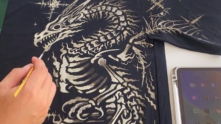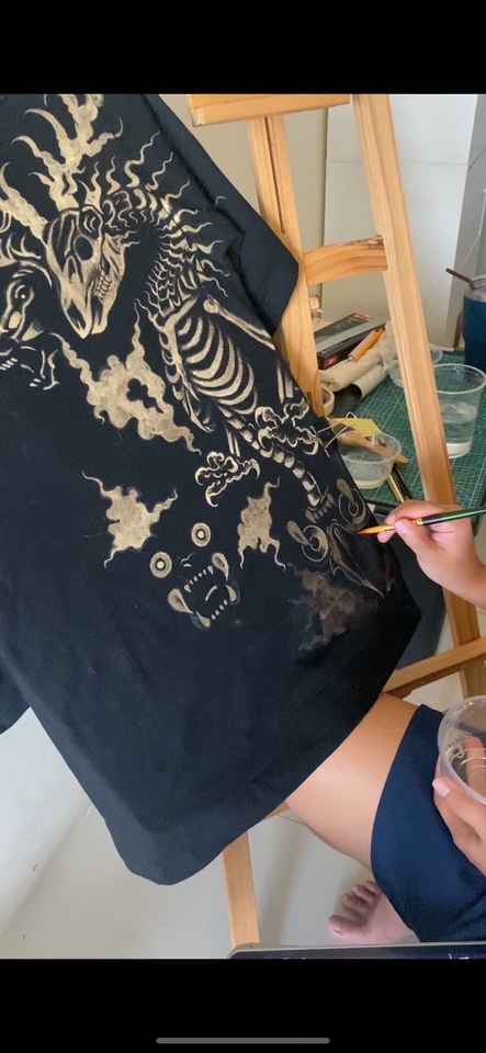 ออกแบบลายเสื้อ ด้วยโปแกรม Procreate แล้วนำมาเพ้นท์ลงเสื้อด้วยเทคนิคกัดสีเสื้อด้วยไฮเตอร์ รวมถึงเทคนิค การเพ้นสีบนเสื้อ(มีสีเพ้นเสื้อแล้ว) หากลูกค้าไม่อยากได้เสื้อก็สามารถคุยลายละเอียดการออกแบบลายได้ ข้อมูลการออกแบบลาย ลูกค้าเตรียม Concept , Reference , Mood and Tone , สี และ คาแร็คเตอร์ ขั้นตอนการทำงาน 1. ลูกค้าอธิบาย Concept Reference สี คาแร็คเตอร์ 2. เสนอราคา ระยะเวลาการทำงาน 3. Sketch แบบให้ลูกค้า 4. ส่งดราฟ 1 5. ส่งคราฟ 2 หากมีการแก้ไข 6. ลงสีบนเสื้อ (หากลูกค้าต้องการเสื้อ) +ราคาเสื้อ และค่าส่ง ได้งาน HandMade จากศิลปินบ้านๆ 7. ส่ง Final
