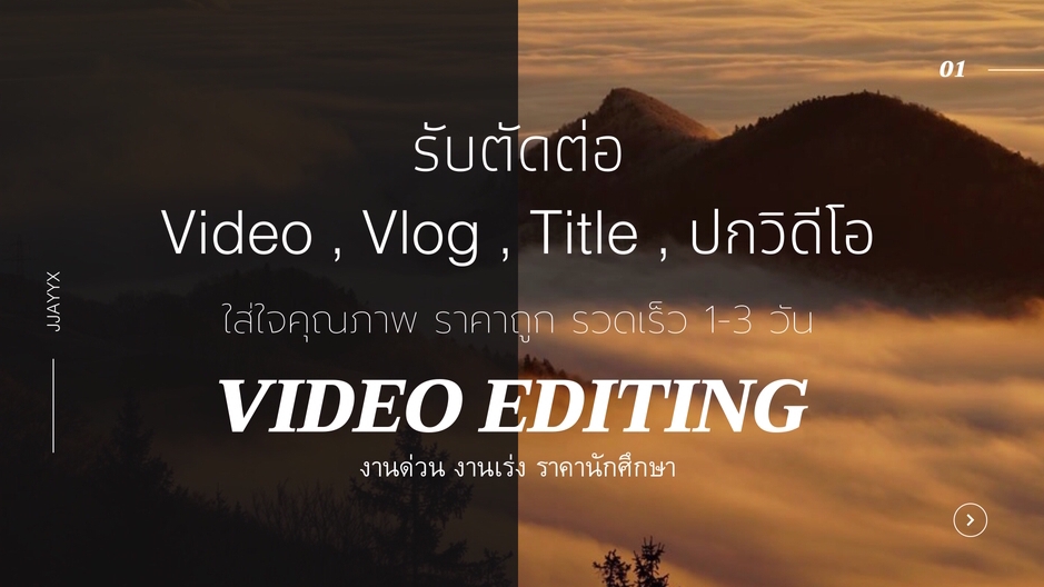 ชื่อเจครับ มีประสบการณ์ด้านการตัดต่อมากกว่า 3 ปี ตัดต่อคลิป ทำปกTitle Vlog Cover-music/video