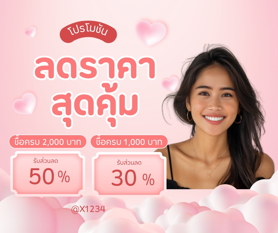 ฿1,299ได้รับ AI พรีเซ้นเตอร์ 2 คน ภาพโปรโมทจำนวน 20 ภาพ ใน CANVA
