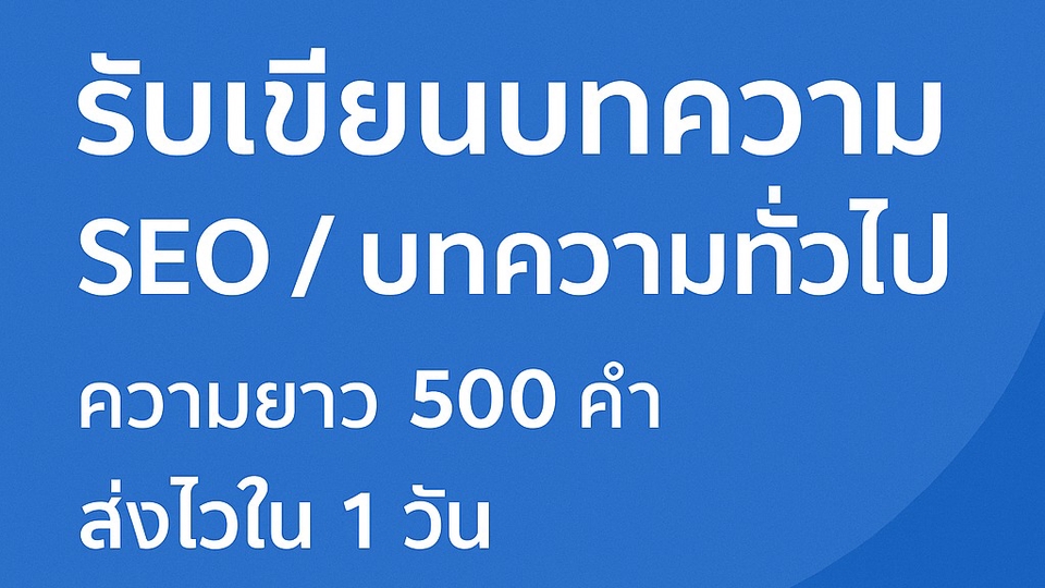 รับเขียนบทความ SEO / บทความทั่วไป ความยาว 500 คำ ส่งไวใน 1 วัน