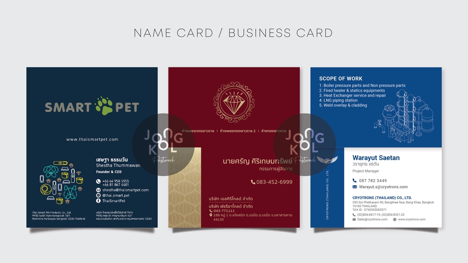 รับออกแบบสื่อสิ่งพิมพ์ เมนู / โบรชัวร์ / นามบัตร / company profile / งานออกแบบอื่นๆสอบถามก่อนได้ค่ะ - นามบัตรหน้าเดียว ราคา 750 บาท หน้าหลังราคา 1000 บาท / 1 รายชื่อ l รายชื่อต่อไปรายชื่อละ 200 บาท ได้รับไฟล์งาน .ai(create font)+.pdf.+.jpeg **ต้องการไฟล์แก้ไขข้อความได้ +500฿ (NO FONT) - Brochure A4-A5 : หน้าละ1500฿ ให้ไฟล์ .ai(create font)+.pdf.+.jpeg **ต้องการไฟล์แก้ไขข้อความได้ +500฿/หน้า (NO FONT) - แผ่นพับ 2พับ3ตอน หน้าหลัง ราคา 3500 บาท ให้ไฟล์ .ai(create font)+.pdf.+.jpeg **ต้องการไฟล์แก้ไขข้อความได้ +1500฿ (NO FONT) - company profile & catalog สอบถามราคาได้นะคะ ราคาขึ้นอยู่กับรายละเอียดและจำนวนหน้าค่ะ ***ราคาออกแบบไม่รวมซื้อภาพลิขสิทธิ์ ไดคัท-รีทัชภาพค่ะ*** สิ่งที่ลูกค้าต้องเตรียม 1. ข้อมูลที่ต้องการใส่ / ไฟล์ Note, Ppt, Excel, Docx ที่ฟรีแลนซ์สามารถก็อปปี้ข้อมูลได้ค่ะ 2. concept / mood tone ของงาน Referenceงาน 2-3 แบบ 3. ไฟล์โลโก้ .ai หรือ ไฟล์อื่นๆที่มีขนาดชัดเจน 4. รูปภาพที่ใช้ / หากไม่มีรูปภาพให้ สามารถแจ้งเพื่อซื้อรูปลิขสิทธิ์ได้ค่ะ ขั้นตอนการทำงาน 1. ส่งรายละเอียดของงานให้ฟรีแลนซ์ (ข้อมูล, concept, ref.) 2. ฟรีแลนซ์เสนอราคาให้ลูกค้า เริ่มออกแบบหลังจากชำระเงินค่ะ 3. ฟรีแลนซ์ออกแบบงานดราฟแรกให้ลูกค้า 2 แบบ เลือก 1 แบบ และแก้ไขงานได้อีก 2 ครั้ง 4. ไฟนอลส่งไฟล์งานให้ลูกค้า