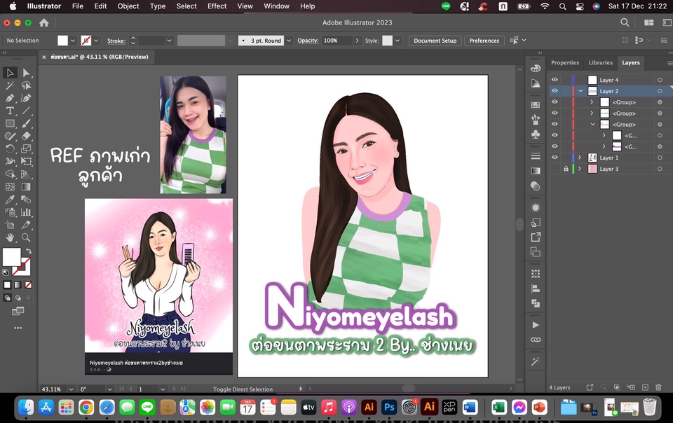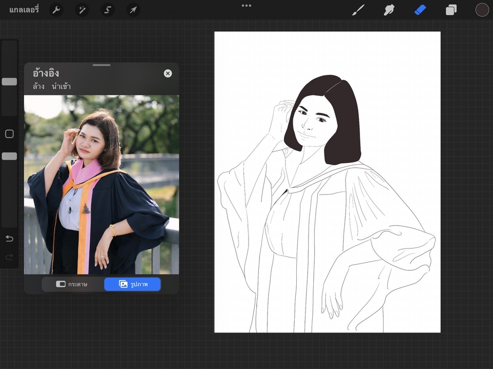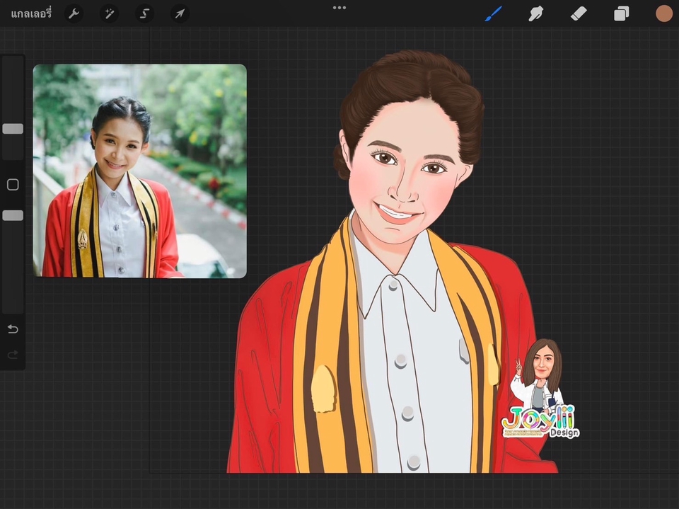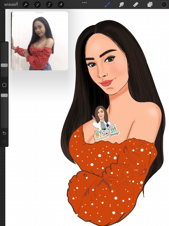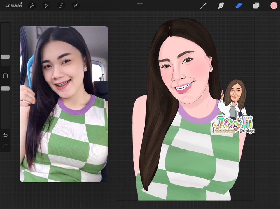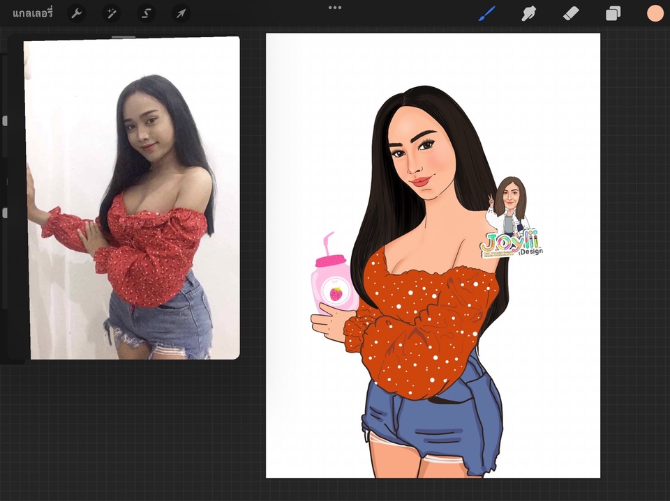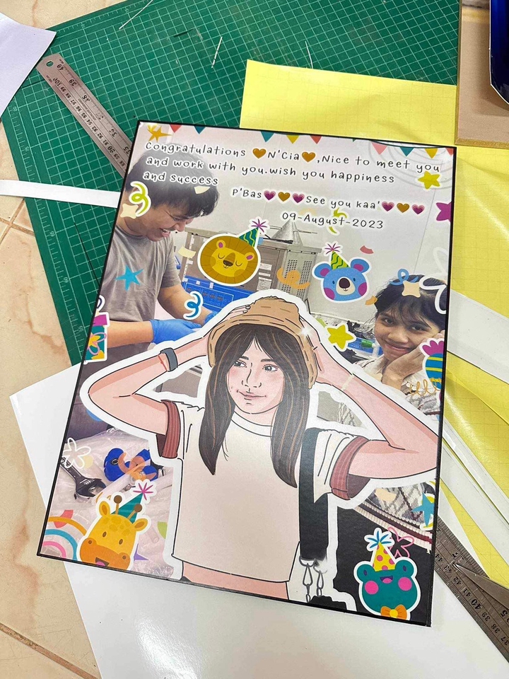 ลักษณะงานก็จะเป็นการวาดโดยอ้างอิงจากภาพต้นฉบับ เป็นภาพกึ่งการ์ตูน เพื่อนำไปอัดกรอบหรือปริ้นภาพสี เพื่อให้ในโอกาสสำคัญๆ โดยสามารถวาดและนำภาพอื่นมาใส่หรือสามารถออกแบบการ์ตูนของตัวเองได้เลย ตามใจชอบ ขั้นตอนการทำงาน 1. บรีฟงาน คุยรายละเอียดที่ต้องการ และร่างแบบก่อน การวาดจริง 2. ลงมือวาดจริง และส่งภาพการร่างงานเป็นระยะๆ ในช่วงของการวาดเพื่อไม่ให้เกิดข้อผิดพลาด ระหว่างทำงาน 3. ส่งงานให้ดู เพื่อจบงานภายใน 3 - 5 วัน หลังจากสรุปงาน กันแล้วแต่ความยากง่ายของงาน และจำนวนงานที่ให้วาดทั้งหมด