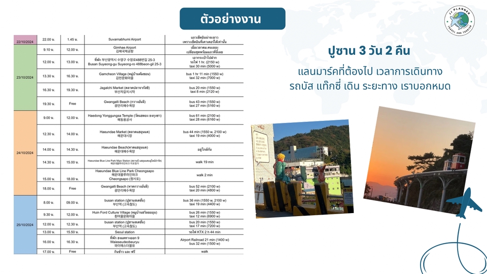 รับทำแพลนเที่ยว วางแผนการเดินทางอย่างละเอียด สำหรับคนไม่มีเวลา หรือเป็นทริปแรกแล้วไม่อยากง้อทัวร์ ▶️ แพลนได้ตามสไตล์ที่ต้องการ เน้นช้อปปิ้ง คาเฟ่ กิน ธรรมชาติลุยๆ ทริปครอบครัว เพื่อน คู่รัก สายหยัด ▶️ แนะนำย่านที่พัก ร้านอาหารที่ควรไป ขนม ของฝากที่ไม่ควรพลาด ▶️ แพลนการเดินทางอย่างละเอียดทั้งใช้รถสาธารณะ(รถไฟ, รถบัส) หรือขับรถเอง ▶️ แนะนำแอปที่ต้องใช้ และซิมการ์ด ▶️แนะนำคำถามตม. และการเตรียมเอกสารต่างๆ สิ่งที่ลูกค้าจะได้รับ ✅แพลนการเดินทางแบบละเอียดในรูปแบบ link และ PDF สามารถเปิดในมือถือได้ ✅ทุกสถานที่มีลิงค์สำหรับกดเข้าสู่ Google Maps ✅ของเกาหลีจะมีชื่อเกาหลีและลิงค์เพื่อเข้าสู่แอป Naver Map ขั้นตอนการทำงาน 1. รับบริฟข้อมูลเบื้องต้น : ประเทศ จำนวนคน งบประมาณการเดินทาง ช่วงเวลาในการเดินทาง ระยะเวลาในการเดินทาง กิจกรรมที่เน้น สไตล์ในการเที่ยว(ระบุสถานที่ที่ต้องการได้) 2. ลูกค้าชำระเงิน [หากชำระเงินแล้ว ไม่สามารถปรับเปลี่ยนระยะเวลาในการเดินทางได้] 3. ร่างแพลนการเดินทาง ลิสต์สถานที่ในแต่ละวัน เพื่อให้พิจารณาและปรับเปลี่ยนแพลน 4. แนะนำโรงแรมหรือ AirBNB (กรณีลูกค้าต้องการ) 5. ผู้เขียนจะเริ่มวางแผนการเดินทางให้กับลูกค้าโดยใช้เวลา 7-10 วัน 6. สรุปแพลนการเดินทางแบบละเอียดในรูปแบบ link และ PDF ลูกค้าสามารถแจ้งแก้ไขได้ไม่เกิน 3 ครั้ง 7. ส่งงานเรียบร้อยรอไปเที่ยวได้เลยค่ะ