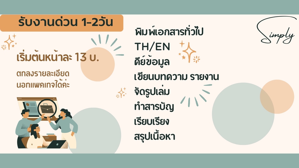 รับจัดการงานเอกสาร : งานเขียน แปล ค้นคว้า จัดทำรายงาน พิมพ์งาน และคีย์ข้อมูล