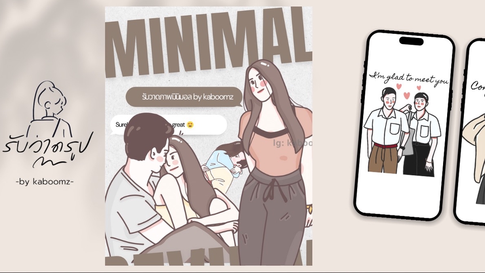 “ถ่ายทอดความรู้สึก ผ่านเส้นสายที่เรียบง่าย” วาดภาพมินิมอลในแบบของคุณ จะคู่รัก ครอบครัว หรือสินค้าที่อยากให้โดดเด่น ออกแบบให้ทุกภาพ ‘เล่าเรื่องได้’ อย่างมีสไตล์ 📌 วาดจริง ส่งไว แก้ได้ตามใจ 📩 ทักมาได้เลย by kaboomz • วาดด้วยมือในสไตล์เฉพาะตัว • โทนสีอบอุ่น สื่ออารมณ์ได้ดี • เหมาะกับคนที่อยากวาดเป็นของขวัผญ • แก้ไขได้ 1-2 ครั้งตามแพ็กเกจ • ส่งไฟล์ความละเอียดสูง พร้อมใช้งาน 💯✅ส่งงาน 1-3 วัน 🔹 Mini Portrait (คนเดียว/คู่รัก) • ภาพวาดสไตล์มินิมอล 1-2 คน (ครึ่งตัว/เต็มตัว) • เลือกโพสต์และคาแรกเตอร์ได้ • เหมาะสำหรับใช้เป็นรูปโปรไฟล์ ปกเพจ หรือของขวัญ ราคา: 350 บาท/ภาพ ⸻ 🔹 Product Promo Minimal (ภาพโปรโมตสินค้า) • วาดคนถือสินค้า / โชว์สินค้าในฉากมินิมอล • ใส่ข้อความโฆษณาหรือชื่อแบรนด์ได้ • เหมาะสำหรับลงโพสต์ขายของหรือโปรโมตใน IG/FB ราคา: 450 บาท/ภาพ (ราคาขึ้นอยู่กับความซับซ้อนของสินค้าและองค์ประกอบ)