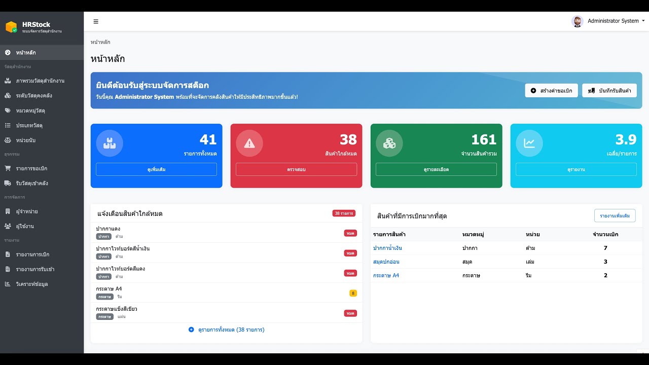 ระบบคลังพัสดุสำนักงาน HR STOCK Version 3
