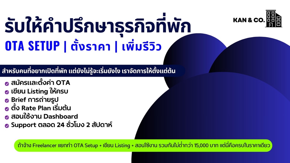 รับให้คำปรึกษาธุรกิจที่พัก | OTA Setup | ตั้งราคา | เพิ่มรีวิว