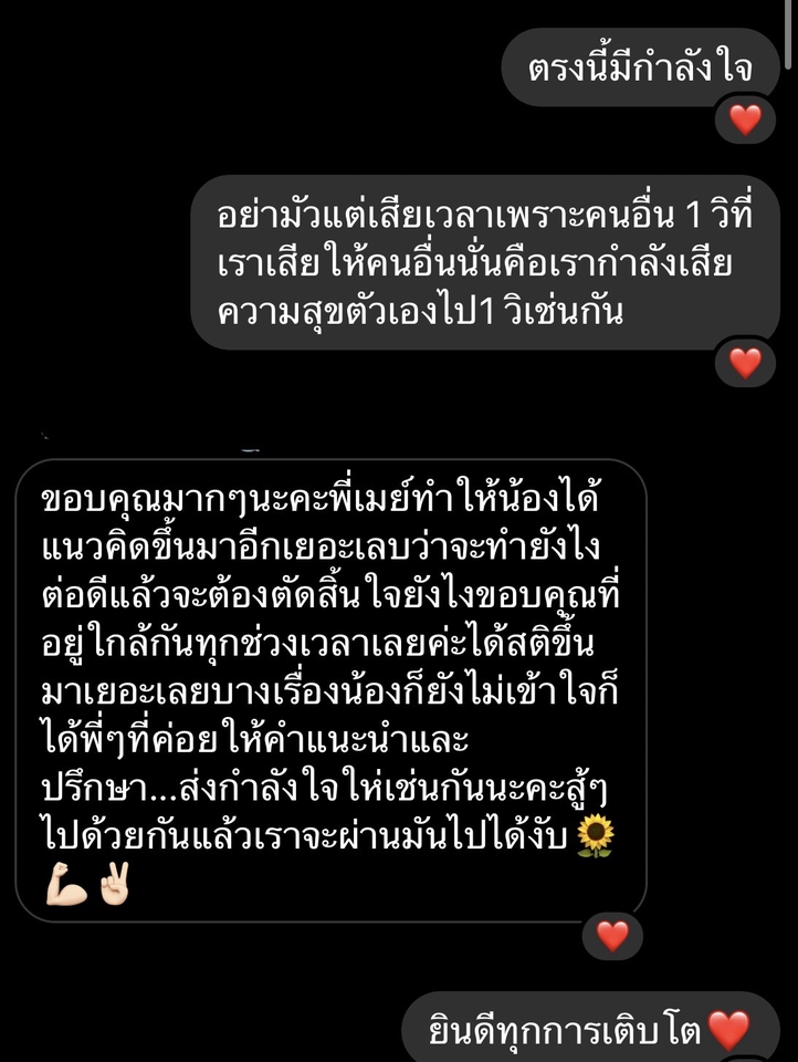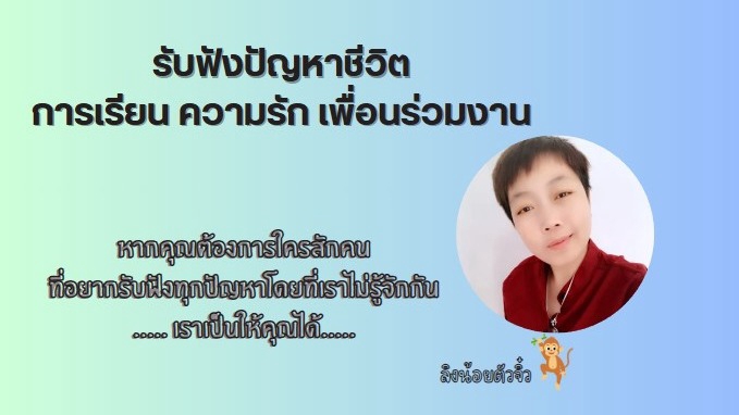 ยินดีรับฟังและให้คำปรึกษาทุกด้านปัญหา ไม่ว่าจะเป็นเรื่องงาน เพื่อนร่วมงาน ความรัก การเรียน ปัญหาที่คุณอยากคุยกับใครสักคนนึงที่รู้สึกว่า ไม่ต้องแนะนำก็ได้ ไม่ต้องปลอบก็ได้ ไม่ต้องพูดอะไรเลย หรือขอแค่ใครสักคนที่รับฟังปัญหาของคุณคอยให้คำปรึกษากับคุณแบบไม่มีบ่น ที่ที่คุณอยากได้ความปลอดภัย เราจะเป็นจุดปลอดภัยให้คุณค่ะ ถ้าคุณเลือกเรา ขั้นตอนการทำงาน 1. แจ้งเวลาการทำงาน 2. พูดคุยรายละเอียด 3. รับฟังปัญหาที่ลูกค้าเจอ 4. แนะนำแนวทางแก้ไข