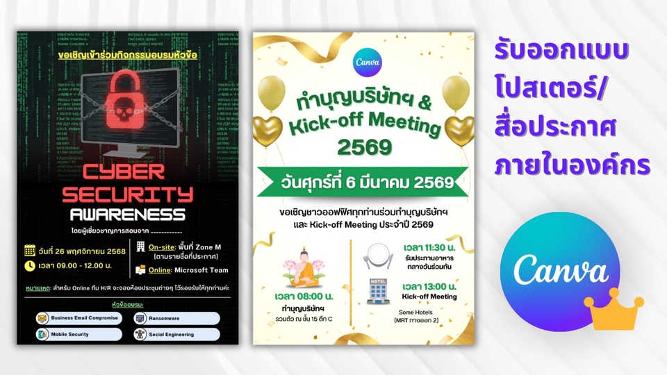 รับออกแบบโปสเตอร์/สื่อประกาศภายในองค์กร/อื่นๆ ด้วย Canva สวย อ่านง่าย สไตล์ HR