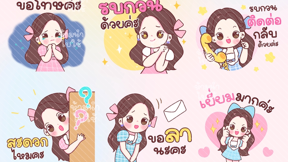 📂 จำนวนไฟล์ที่ลูกค้าจะได้รับ ลูกค้าจะได้รับไฟล์ PNG ตามจำนวนตัวละครที่เลือกในแพ็กเกจ 💰 ราคาแพ็กเกจ • 8 ตัวละคร — 1,399 บาท • 16 ตัวละคร — 2,399 บาท • 24 ตัวละคร — 3,499 บาท • 32 ตัวละคร — 4,699 บาท • 40 ตัวละคร — 5,899 บาท 🛠 ขั้นตอนการทำงาน 1. บรีฟงาน – คุยรายละเอียดที่ลูกค้าต้องการ (ท่าทาง, อารมณ์, คอนเซปต์ ฯลฯ) 2. ออกแบบคาแรคเตอร์ – วาดและส่งแบบตัวอย่างให้ลูกค้าดูเพื่อยืนยัน 3. ส่งงาน – ส่งงานไฟล์ PNG ตามจำนวนที่เลือก ⸻ ✅ เงื่อนไขการแก้ไข หากลูกค้า Reject จากทางไลน์ สามารถแก้ไขงานให้ฟรี