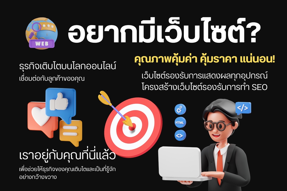 ฿14,900บริการทำเว็บไซต์ธุรกิจทั่วไป (จำนวน 5 หน้า) ออกแบบสวยงาม รองรับมือถือ มีระบบหลังบ้าน พร้อม SSL ความปลอดภัย และ SEO เบื้องต้น ช่วยเพิ่มความน่าเชื่อถือและให้ลูกค้าค้นหาคุณเจอง่ายขึ้น