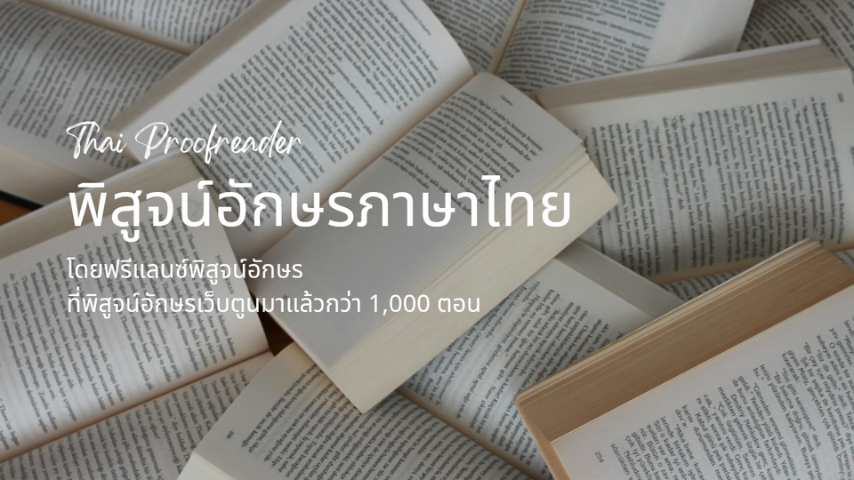 ฟรีแลนซ์พิสูจน์อักษรผู้มีความละเอียดรอบคอบและตรงต่อเวลา มีประสบการณ์พิสูจน์อักษรเว็บตูนมากกว่า 1,000 ตอน