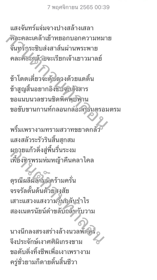 รับแต่งคำประพันธ์ เช่น โคลง ฉันท์ กาพย์ กลอน ร่าย ทุกประเภท เขียนสุนทรพจน์ในโอกาสสำคัญต่างๆ เช่น งานเกษียณอายุ งานมงคลสมรส งานศพ รวมถึงงานเขียนประเภทอื่นๆที่ต้องใช้วาทศิลป์ ขั้นตอนการทำงาน 1. แจ้งประเภทของงานเขียน ความยาวที่ต้องการ และวัตถุประสงค์ในการใช้งาน 2. ตกลงราคา ระยะเวลาการทำงาน เงื่อนไขในการปรับแก้งาน รวมถึงรายละเอียดอื่นๆที่เกี่ยวข้อง 3. เริ่มทำงานตามที่ได้รับมอบหมาย 4. ส่งมอบงานตามกำหนด 5. หากต้องการปรับแก้ สามารถแจ้งความประสงค์ได้ และจะปรับแก้ให้ 1 ครั้ง ภายในระยะเวลาที่ตกลงกัน