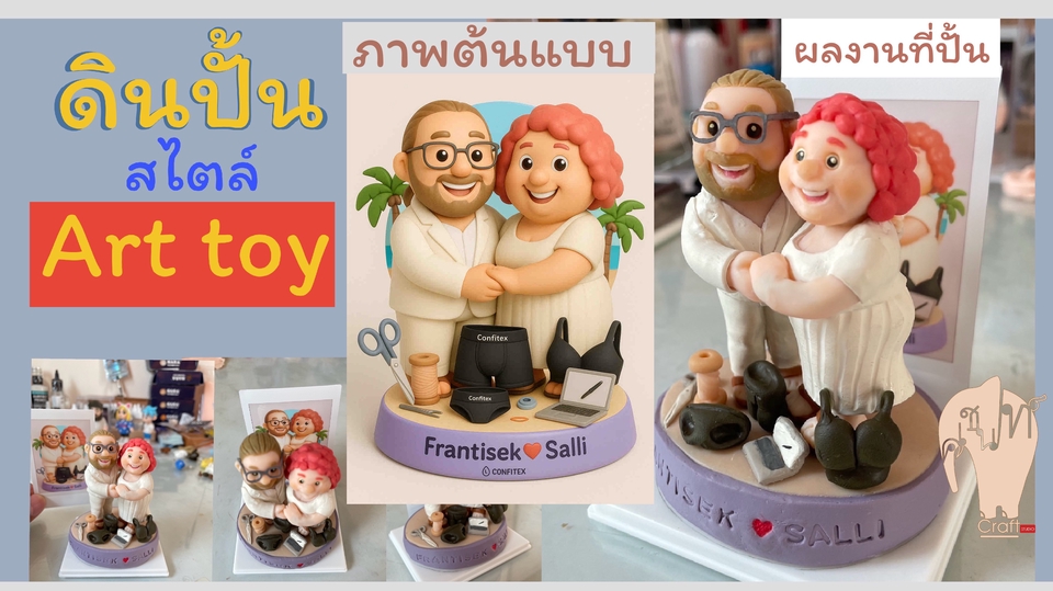 เป็นงานที่ปั้นตามรูปแบบภาพ Art toy จากลูกค้าที่ทำขึ้นใน Ai ที่ต้องการได้ผลงานที่เป็นชิ้นงานจริง โดยมีลักษณะที่เหมือนและใกล้เคียงกับต้นแบบในรูปภาพที่ทำการส่งมาหรือเป็นต้นแบบ ขนาดผลงานจะอยู่ที่3-4.5นิ้ว ขั้นตอนการทำงาน 1. สอบถามและระบุ รายละเอียด ที่ต้องการสร้างร่วมกัน เพื่อประเมินความพึงพอใจ 2. เริ่มต้นสร้างผลงานโดยมีระยะเวลาในการสร้างผลงานอยู่ที่ 3-7วัน ต่อชิ้นตัวละคร ขึ้นอยู่กับความยากง่ายของตัวละครนั้นๆ 3. หลังจากปั้นผลงานเสร็จจะส่งรูปผลงานให้ลูกค้ารับชม และทำการแพ็คจัดส่งในลำดับถัดไป