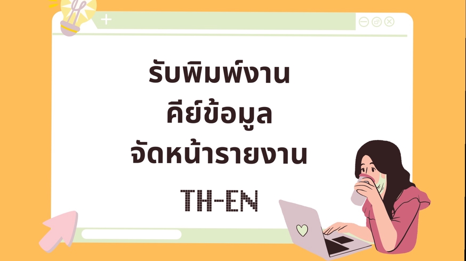 รับพิมพ์งานเอกสารทุกชนิด (TH-EN-สูตรคณิตศาสตร์) คีย์ข้อมูล จัดหน้ารายงาน พิสูจน์ตัวอักษร รับงานด่วน