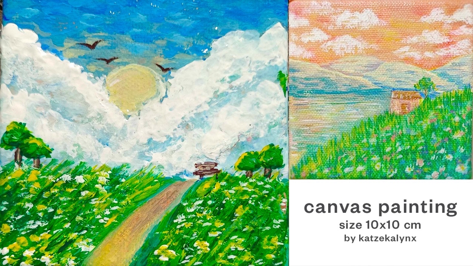 รับวาดภาพระบายสีลงเฟรมผ้าใบขนาด 10x10 cm. ใช้สีกวอช,สีโปสเตอร์ในการทำงานค่ะ มีบริการเคลือบภาพฟรี สามารถทำความสะอาดได้ตลอดด้วยการใช้ทิชชู่เปียกหรือผ้าชุบน้ำสะอาดบิดให้หมาดแล้วเช็ดค่ะ ขั้นตอนการทำงาน 1. บรีฟรายละเอียดงานที่ต้องการ เช่น โทนสีที่ต้องการ,รายละเอียด องค์ประกอบต่างๆ ในภาพ สามารถแนบภาพตัวอย่างประกอบได้ค่ะ 2. สรุปรายละเอียดงาน และชำระค่าบริการ 3. ส่งภาพร่างองค์ประกอบต่างๆ ด้วยดินสอสี สามารถแก้งานได้ในขั้นตอนนี้ *แก้ได้ 3 รอบ กรุณาบรีฟให้ชัดเจน* 4. เริ่มทำงาน และส่งภาพงานที่เสร็จแล้วให้ตรวจสอบ โดยจะใช้เวลาภายใน 3-5 วันหรืออาจเร็วกว่านั้นขึ้นอยู่กับรายละเอียดงาน 5. ทำการเคลือบภาพ และจัดส่งตัวงานให้ลูกค้าผ่านทางไปรษณีย์