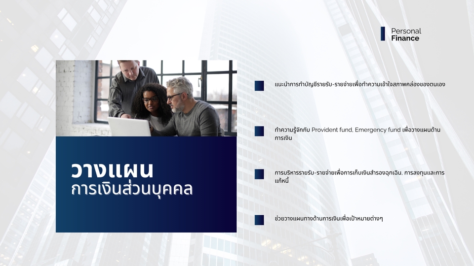 - • สามารถวางแผนด้านการเงิน, บริหารค่าใช้จ่าย