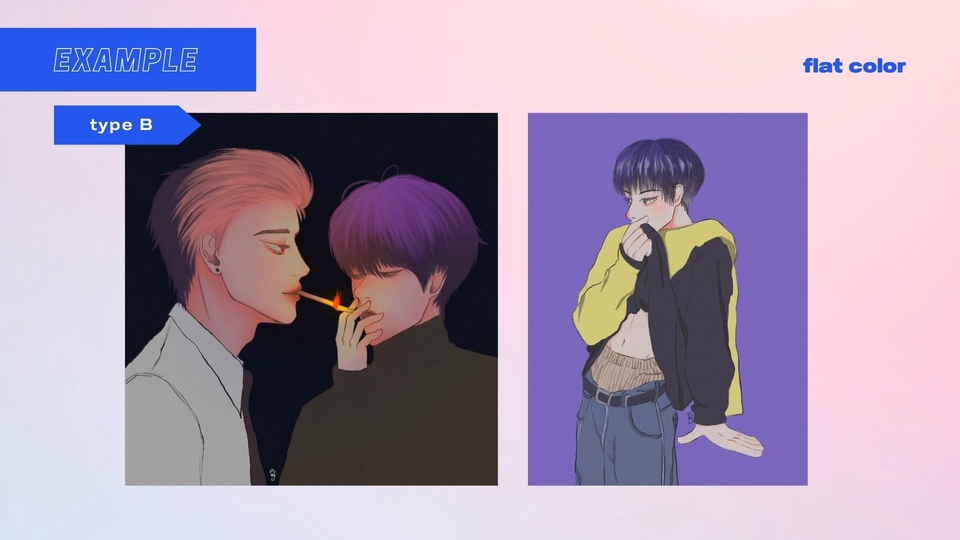 ·͜·♡ สามารถสอบถามพูดคุยรายละเอียดก่อนใช้บริการได้ค่ะ how to order 1. ส่งบรีฟหรือรายละเอียดที่ต้องการให้วาด (ถ้าละเอียดมากยิ่งดีค่ะ) — ระบุวัตถุประสงค์ที่จะเอาไปใช้งาน — ระบุโทนสีของงาน ,ข้อความ(ถ้ามี), ท่าทาง ,สีหน้า (หากมีref ส่งแนบมาได้เลยค่ะ) — ระบุขนาดและไฟล์ภาพที่ต้องการ (.jpg/.psd /.png /.ai/อื่น ๆ สอบถามได้) — ระบุ Deadline ของงาน 2. รับบรีฟและพูดคุยรายละเอียดเกี่ยวกับงานอย่างครบถ้วน 3. เริ่มร่างแบบ (แก้ไขแบบร่างได้ 3 ครั้ง) 4. เริ่มงานFinal (แก้ไขได้ 3 ครั้ง หากมีแก้ไขเพิ่มเติมคิด 50 THB/ครั้ง) 5. ส่งผลงานเพื่อให้ลูกค้าตรวจสอบความเรียบร้อย รายละเอียดราคาเพิ่มเติม ราคาเริ่มต้น 400 THB (ลงสีพื้น, พื้นหลังใส) — เพิ่มตัวละคร (350 THB / ตัวละคร) — เพิ่มฉากหลัง เริ่มต้น 150 THB — เพิ่มพร็อพอื่นๆ เริ่มต้น 80 THB — เชิงพาณิชย์ ราคา x2 (หรือตามตกลง) ไฟล์ที่ได้รับ : - .png / .jpg / .psd - (ในกรณีไม่ได้แจ้งขนาดที่ต้องการ) ขนาด 3000x4000 pixel 300 dpi ขั้นตอนการทำงาน 1. ส่งบรีฟหรือรายละเอียดที่ต้องการให้วาด (ถ้าละเอียดมากยิ่งดีค่ะ) 2. รับบรีฟและพูดคุยรายละเอียดเกี่ยวกับงานอย่างครบถ้วน 3. เริ่มร่างแบบ (แก้ไขแบบร่างได้ 3 ครั้ง) ระยะเวลา 5 - 7 วัน 4. เริ่มงานFinal (แก้ไขได้ 3 ครั้ง หากมีแก้ไขเพิ่มเติมคิด 50 THB/ครั้ง) 7 - 14 วัน 5. ส่งผลงานเพื่อให้ลูกค้าตรวจสอบความเรียบร้อย