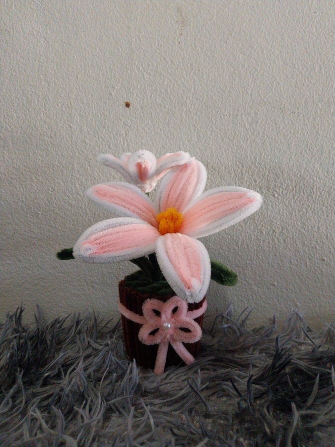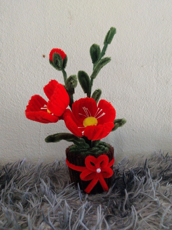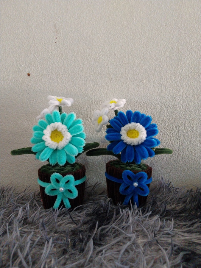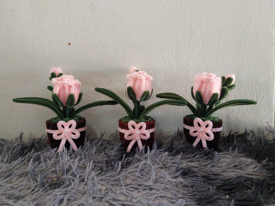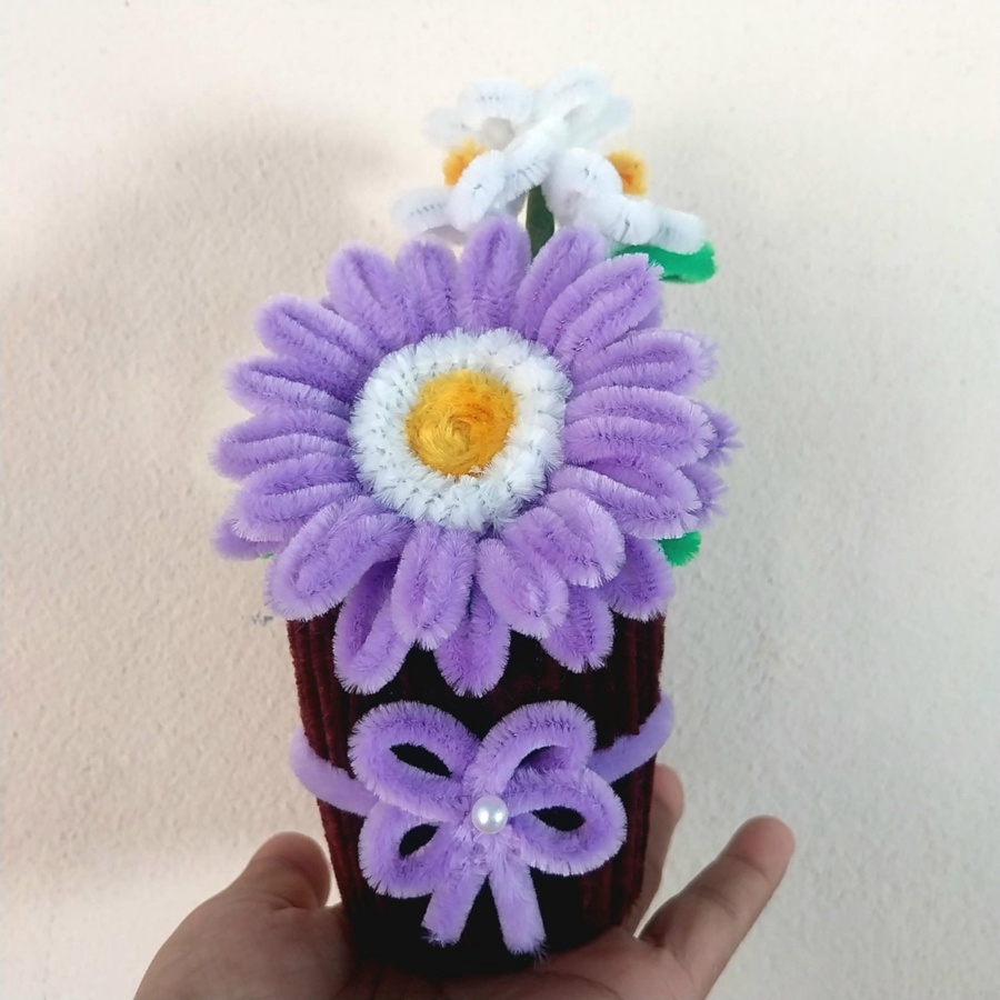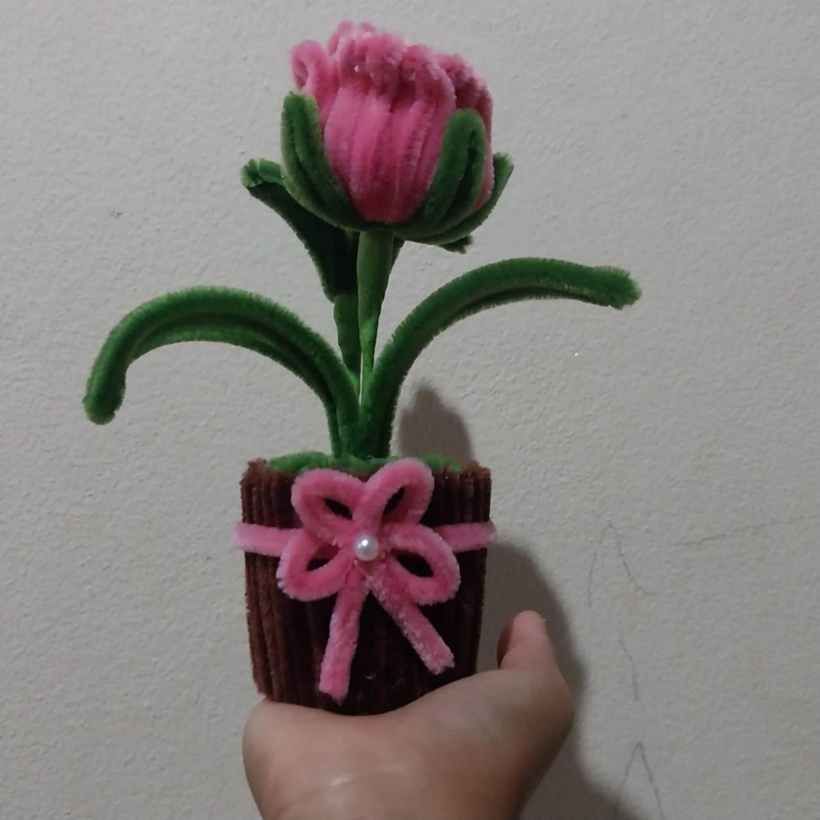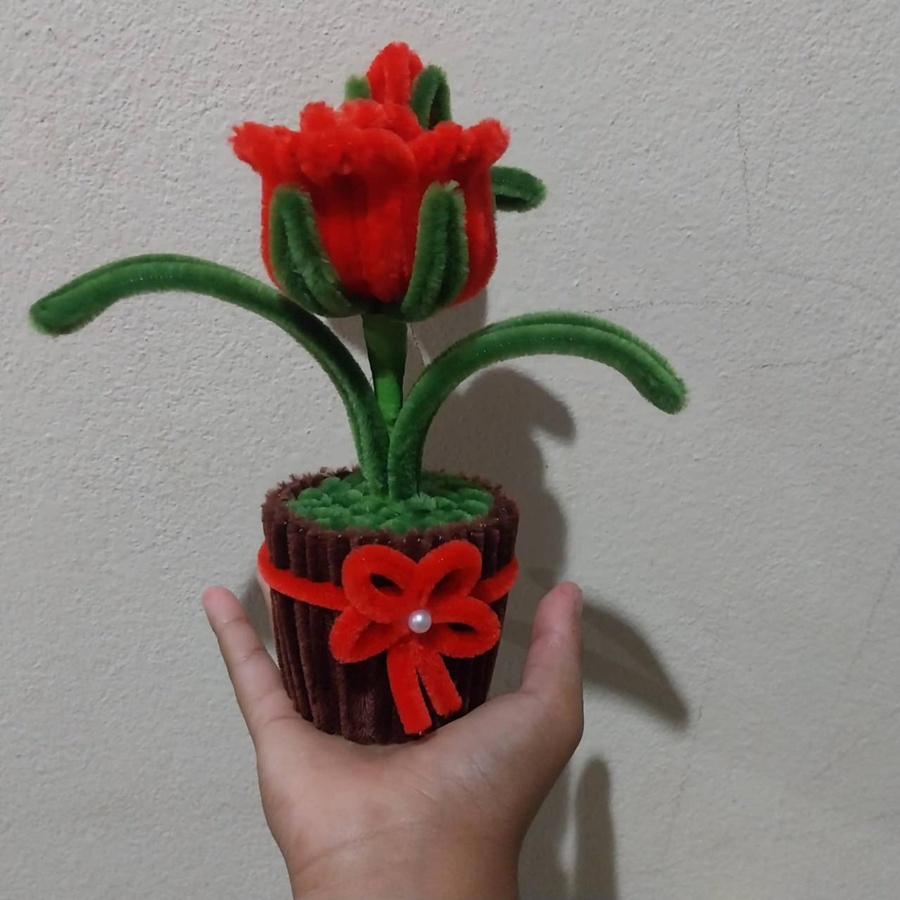 ดอกไม้ DIY จากลวดกำมะหยี่ สวยน่ารักสดใส ตั้งประดับที่โต๊ะทำงาน ห้องน้ำ ตั้งโชว์ในที่ต่างๆ เป็นของขวัญในเทศกาลต่างๆ ไม่ว่าจะวาเลนไทน์ งานปัจฉิมนิเทศน์ วันเกิด วันครบรอบ งานแต่ง ให้เพื่อน ให้แฟน คนรู้จัก ขนาดสินค้าประมาณ 5*6.5*15 ซม. (บวกลบประมาณ 1-3 ซม.) นะคะ สีดอกไม้ สีกระถาง สายคาด โบว์ ถ้าลูกค้าต้องการเปลี่ยนสี สามารถแจ้งได้ค่ะ ขั้นตอนการทำงาน 1. ระบุสีและจำนวนที่ต้องการ 2. ตรวจสอบสีลวดและยืนยันการทำงาน