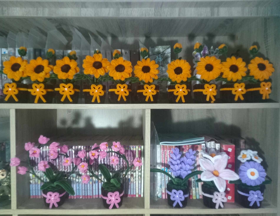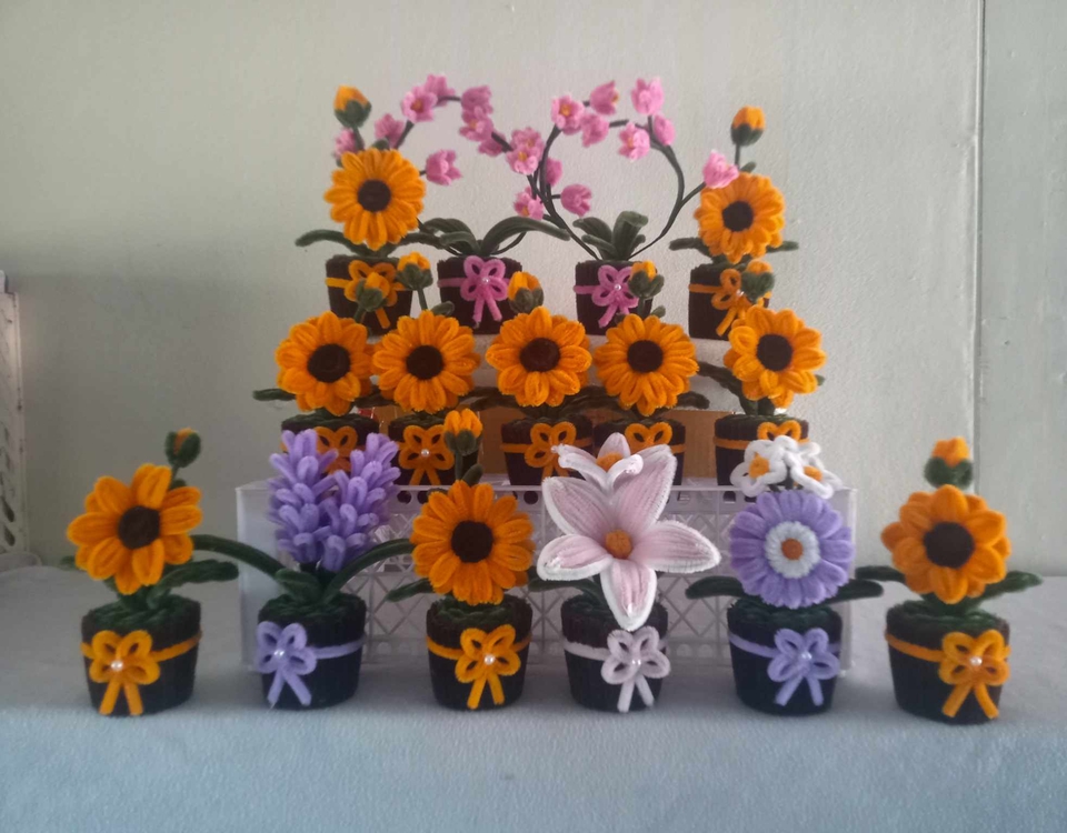 ฿650กระถางดอกไม้ลวดกำมะหยี่ 10 กระถาง ลูกค้ากำหนดดอกและสีของกระถางได้ค่ะ คละแบบคละสีได้