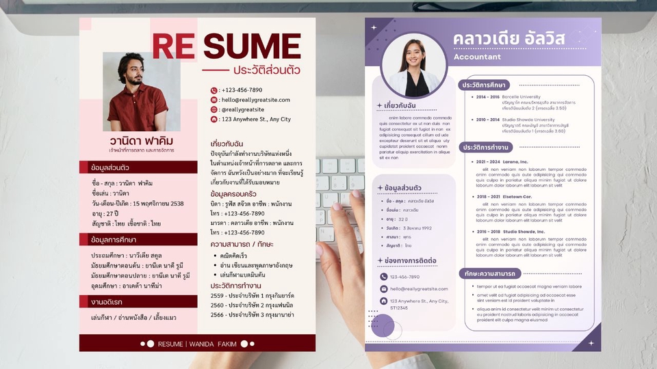 รับเขียนและออกแบบ Resume สำหรับสมัครงาน ทั้งภาษาไทยและภาษาอังกฤษ