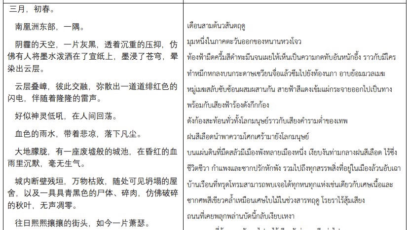 *HSK5, score 246* I have worked on translating a wide range of content, including novels, articles, songs and book's titles, from Chinese to Thai and vice versa. Additionally, I have gained valuable experience as a freelance tutor, teaching Thai students to learn Chinese.