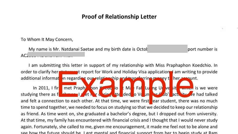 Proof of Relationship Letter หนังสือแสดงความสัมพันธ์
