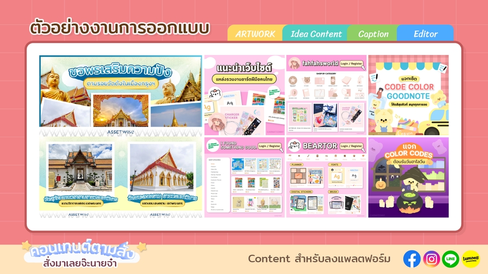 รับทำ Content บนสื่อออนไลน์ทั้งหมด ไม่ว่าจะเป็นบทความ แคปชั่น รีวิว ภาพประกอบ / งานตัดต่อวิดีโอ /งานด่วนไฟลุกพรึ่บ ๆ ก็จัดให้ได้ หากสนใจสามารถทักมาพูดคุยกันก่อนได้น้าาา