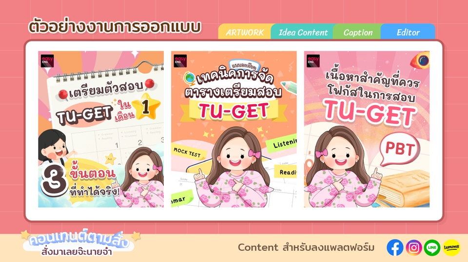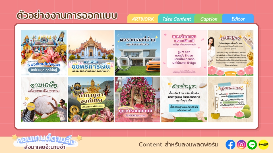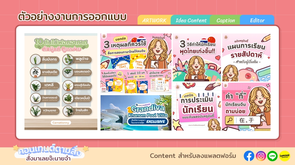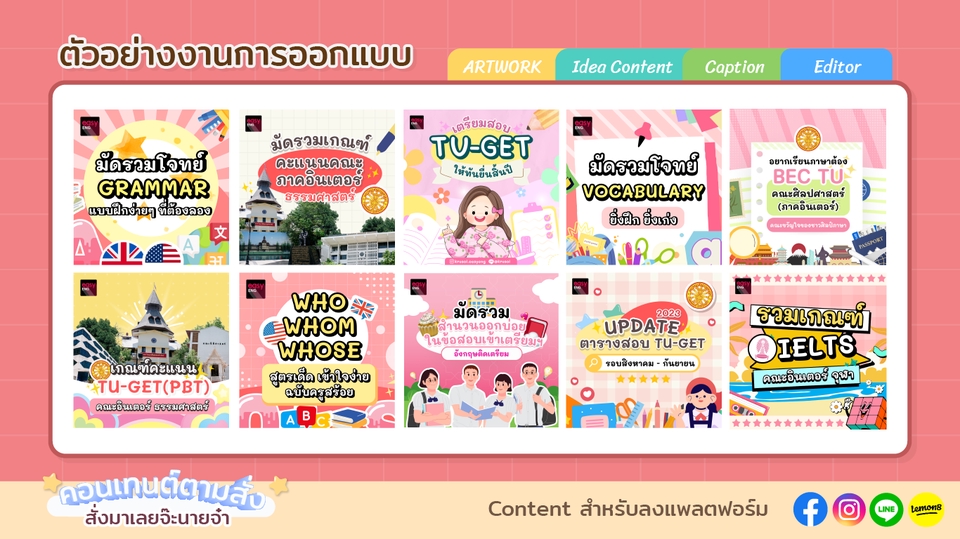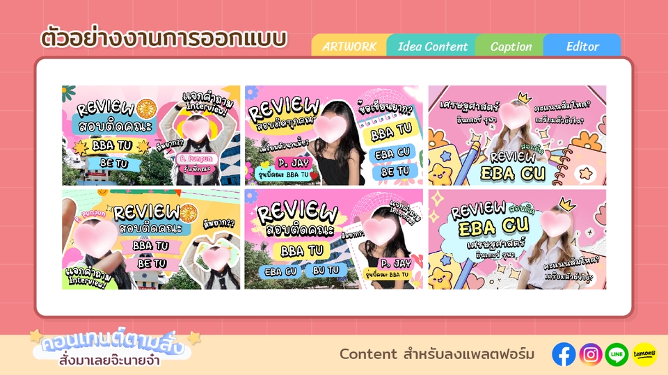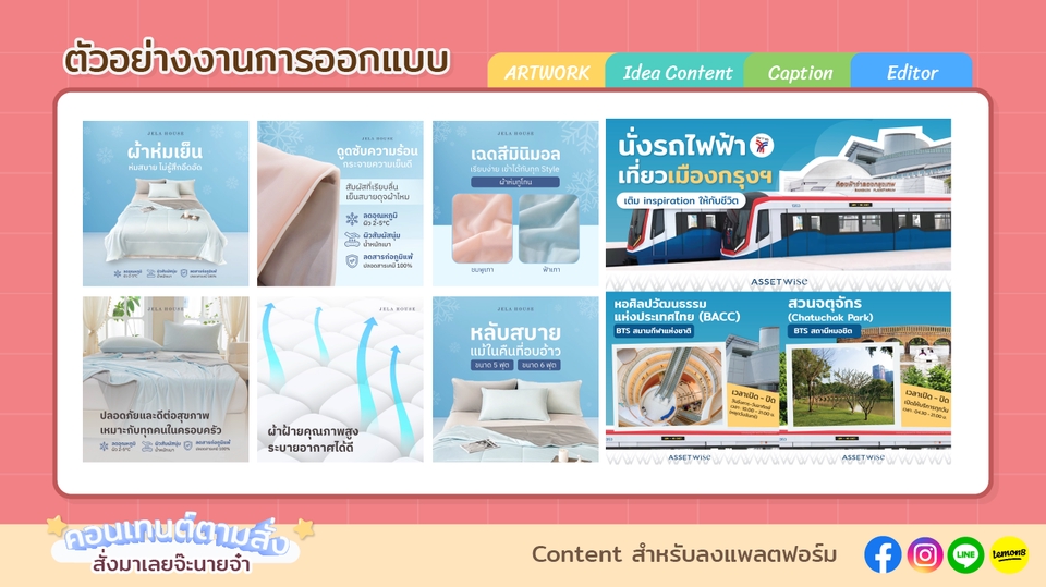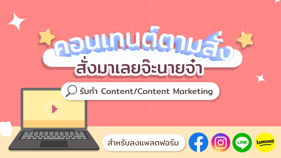 รับเขียนบทความ แคปชั่น คิดคอนเทนต์ ลงแพลตฟอร์ม Facebook Instagram LineและLemon8 โดยการออกแบบคอนเทนต์เฉพาะแบรนด์ต่อแบรนด์ เพื่อความโดดเด่นที่ไม่เหมือนใคร พร้อมภาพประกอบในราคาน่ารักสบายกระเป๋า 😍 ไฟล์ที่จะได้รับ 📔 บทความหรือแคปชั่น Microsoft word 📔 ภาพประกอบ jpeg ถนัดการเขียน 🖌 สินค้า แนะนำสินค้า tie-in 🖌 ไลฟ์สไตล์ 🖌 ความรู้ทั่วไป 🖌 เทคนิคการเรียน การพัฒนาตนเอง 🖌 รีวิวสินค้า ไม่ว่าจะเป็น ซีรี่ย์ หนัง หนังสือ แอพพลิเคชั่น เกม เป็นต้น 💖 สามารถสอบถามพูดคุย หรือทักมาดูผลงานเพิ่มเติมก่อนได้นะคะ ไม่จ้างไม่เป็นไรค่ะ 💖 ขั้นตอนการทำงาน 1. พูดคุยรายละเอียด ลักษณะสินค้าและความต้องการของลูกค้า 2. เสนอใบราคาและลูกค้าดำเนินการชำระเงิน 3. ฟรีแลนซ์ดำเนินงานตามที่ตกลงไว้ 4. ส่งงานให้ลูกค้าตรวจสอบและนำมาแก้ไข 5. หลังจากลูกค้า Approve ฟรีแลนซ์จะดำเนินการส่งงานขั้นสุดท้าย