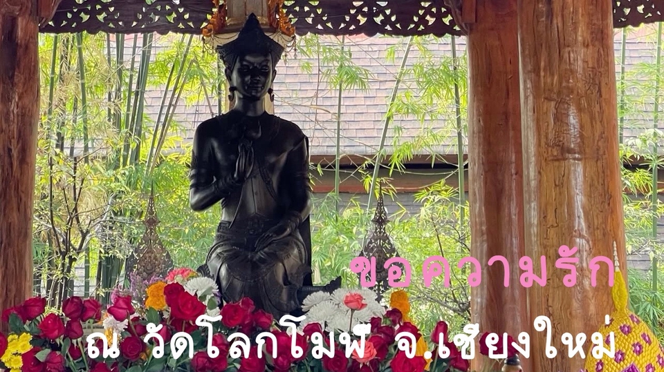 รับฝากไหว้ ถวายดอกไม้ ขอความรัก พระนางจิรประภา แห่งวัดโลกโมฬี จ.เชียงใหม่ วัดดังที่นิยมไหว้ขอความรัก รักไม่สมหวัง อยากให้แฟนเก่ากลับมา - ชุดไหว้ 1 ชุด (ดอกกุหลาบ + ธูป + เทียน) พร้อมเขียนชื่อผู้ถวาย - ขอพรให้ตามที่ผู้ขอต้องการ (ส่งคำขอมาได้เองเลย) - ส่งรูปให้ พร้อมบทสวด จบงาน ขั้นตอนการทำงาน 1. รับงาน ลูกค้าชำระเงิน 2. ลูกค้าส่งคำขอพร 3. ทางเราจัดเตรียมชุดไหว้ ไปถวายและทำบุญให้ที่วัด 4. ทางเราส่งรูปในการไหว้และบทสวดให้ลูกค้า พร้อมชื่อแปะที่ของถวาย จบงาน
