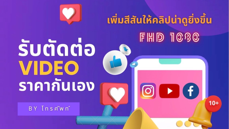 ฿1,000- ตัดต่อคลิปวีดีโอความยาวไม่เกิน 5 นาที - ใส่ Sound Effect - ใส่ Background Music - ใส่ Super ( ตัวหนังสือที่ขึ้นในคลิป )