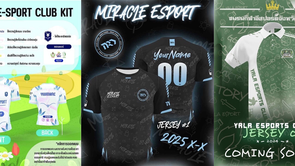 รับออกแบบเสื้อแข่ง Esport 📚มีประสบการณ์ในการออกแบบเสื้อ Esport ให้สังกัดระดับจังหวัดอย่าง YALA ESPORT เป็นเวลา 3 ปี 📌พร้อมรับฟังความคิดเห็นหรือข้อเสนอของลูกค้า 📌 พร้อมปรับแก้งานตามความเหมาะสม และทำงานไวครับ
