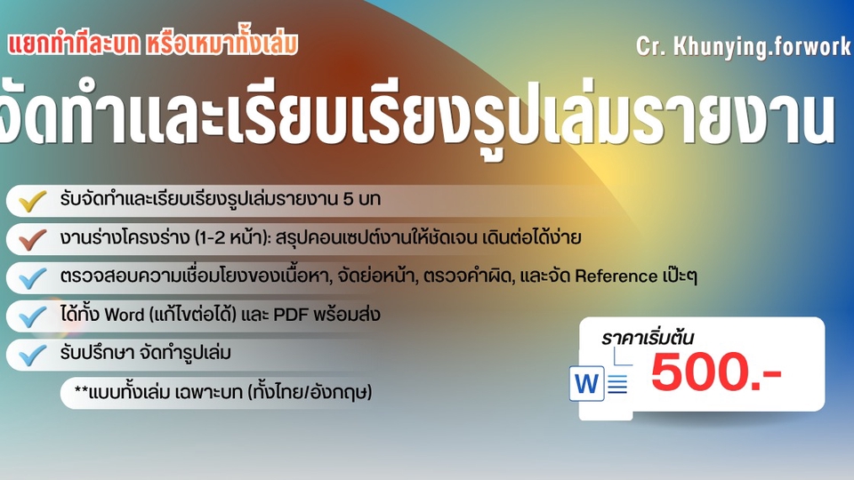 - • ไฟล์งาน ได้ทั้ง Word (แก้ไขต่อได้) และ PDF พร้อมส่ง