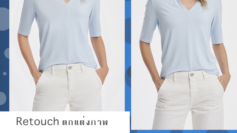 ✤ ลักษณะงาน เป็นการ ตกแต่งภาพ ไดคัท รีทัช เปลี่ยนสี ปรับความคมชัดเพื่อให้ภาพดูน่าสนใจ ซึ่งก็มีรายละเอียดดังนี้ -▹ Di-cut : งานตัดภาพออกจากพื้นหลังเดิม ซึ่งลูกค้าสามารถเลือกได้ว่า ต้องการพื้นหลังแบบ New background หรือ Transparency -▹Re color : เป็นการเปลี่ยนสีให้กับสินค้า จากสีหนึ่งไปยังอีกสีหนึ่งซึ่งในงานเปลี่ยนสีนี้ลูกค้าจะต้องส่งไฟล์ตัวอย่างสีมาด้วย -▹ Retouch : ทำความสะอาดสิ่งสกปรก ลบสิว ไฝ ฝ้า จุดด่างดำ และรอยตำหนิที่เกิดขึ้นบนภาพ เช่น ลดรอยยับบนผ้า สิ่งของ คน ซึ่งในส่วนนี้ลูกค้าต้องระบุให้ชัดว่าต้องการแบบไหน -▹ Contrast : ในส่วนนี้เป็นการเพิ่มความชัด ปรับแสง เพิ่มมิติให้กับภาพ ซึ่งในส่วนนี้จะทำให้ในทุกแพ็กเกจ กรณีที่สีดูแบน หรือมืด จนดูผิดจากธรรมชาติ ✤ เงื่อนไขในการดำเนินงาน - ระยะเวลาในการดำเนินงาน 1-3 วัน - ปรับแก้ไขงานได้ไม่เกิน 3 ครั้ง - ไฟล์ความละเอียดสูงสำหรับงานพิมพ์ 300 dpi ****กรณีงานด่วน!!! กรุณาแจ้งทันทีในวันที่ทำการตกลงรับคำสั่งงาน และ รอรับงานภายในเวลา 30 นาที - 2 ชั่วโมง ☛ [อาจมีค่าบริการเพิ่มทั้งนี้ก็ขึ้นอยู่กับความยากง่ายของงานด้วย] ☛ หากลูกค้ามีข้อสงสัยสามารถสอบถามได้ค่ะ...... ขั้นตอนการทำงาน 1. ลูกค้าบอกรายละเอียดงาน พร้อมกับส่งไฟล์งาน 2. ตกลงราคา และชำระเงิน [ราคาสามารถปรับเปลี่ยนได้ขึ้นอยู่กับความยากง่ายของภาพ] 3. เริ่มงาน - ลูกค้าตรวจสอบความถูกต้อง (หากมีการสั่งแก้ไข หรือเปลี่ยนแปลงทำได้ไม่เกิน 3) 4. ส่งไฟล์งานตามวันเวลาที่ลูกค้านัดหมายไฟล์ (.JPG .PNG . TIFF .PSD) โดยขนาดของภาพจะขึ้นอยู่กับไฟล์ภาพต้นฉบับที่ลูกค้าส่งมา