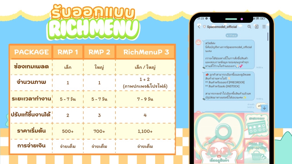 ริชเมนู (Rich menu) พร้อมภาพโปรไฟล์และปกเพจ