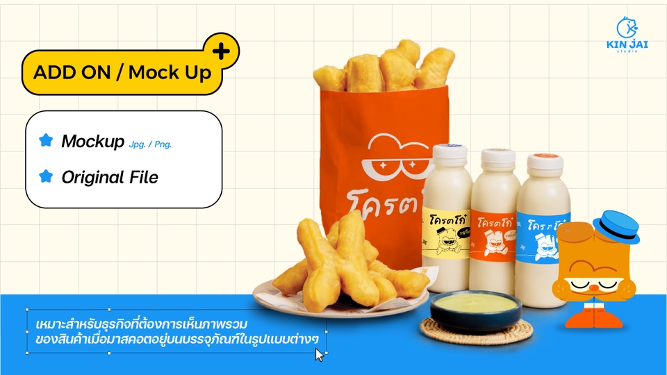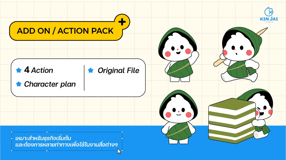 แพคเกจเสริมสำหรับต่อยอดมาสคอตของธุรกิจคุณให้ดูมีมิติมากยิ่งขึ้น เพิ่มท่าทางเพื่อให้เหมาะกับการใช้งานในรูปแบบต่างๆ หรือการออกแบบ Mockup Packaging สำหรับการต่อยอดเป็นบรรจุภัณฑ์ในอนาคต ขั้นตอนการทำงาน กรณีที่ลูกค้าเลือกจ้าง Action pack - ทางลูกค้าบรีฟความต้องการว่าอยากได้ท่าทางอะไรและใช้งานในรูปแบบใดบ้าง - ทางเราจะนำขอมูลที่ได้มานำไปสเก็ต และให้ลูกค้าเลือกรูปแบบที่ชอบก่อนนำไปทำชิ้นงานต่อๆไป - จัดเตรียม ไฟล์ Final ส่งรวมเป็นลักษณะไฟล์ ZIP และไฟล์อื่นๆ ตามที่ตกลง กรณีที่ลูกค้าเลือกจ้าง Mockup Pack - ทางลูกค้าบรีฟความต้องการว่าอยากได้ลวดลายมาสคอตสกรีนลงบนบรรจุภัณฑ์อะไรบ้าง - ทางเราจะนำข้อมูลที่ได้มาไปออกแบบ และจัดแต่งภาพให้ดูมีมิติมากขึ้น - จัดเตรียม ไฟล์ Final ส่งรวมเป็นลักษณะไฟล์ ZIP และไฟล์อื่นๆ ตามที่ตกลง กรณีที่ลูกค้าเลือกจ้าง Costume Pack - ทางลูกค้าบรีฟความต้องการว่าอยากได้ชุดเพิ่มเติมแบบไหนและกี่ท่าทาง - ทางเราจะนำขอมูลที่ได้มานำไปสเก็ต และให้ลูกค้าเลือกรูปแบบที่ชอบก่อนนำไปทำชิ้นงานต่อๆไป - จัดเตรียม ไฟล์ Final ส่งรวมเป็นลักษณะไฟล์ ZIP และไฟล์อื่นๆ ตามที่ตกลง