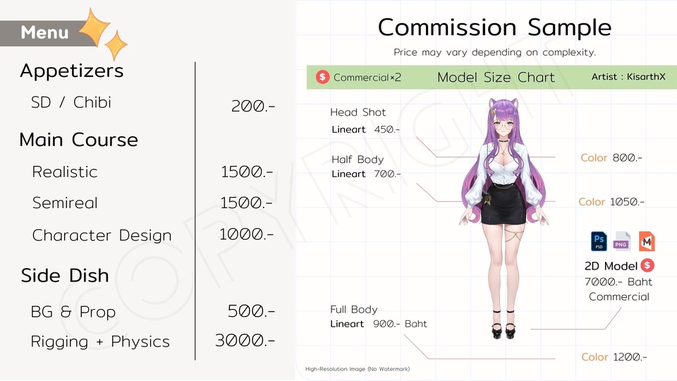 รับออกแบบคาแรคเตอร์ & วาดโมเดล Vtuber แบบ Custom (Character Design | Live2D-ready Illustration | Semi-real & Anime Style) ให้บริการวาดและออกแบบภาพตัวละครในรูปแบบเฉพาะตัว พร้อมส่งต่ออัตลักษณ์ที่ชัดเจนผ่านงานวาดคุณภาพสูง รองรับทั้งงาน Vtuber Model Illustration, Character Sheet, Cover Art, และอื่น ๆ - ถนัดงานสไตล์ Anime Style / Semi-real - พร้อมปรับลายเส้นและ Mood ให้เหมาะกับโจทย์ของแต่ละงาน - รองรับการใช้งานต่อสำหรับ Live2D Rigging - ยินดีรับฟังและปรับตามฟีดแบคลูกค้าเสมอ ขั้นตอนการทำงาน 1.พูดคุยรายละเอียด & Moodboard 2.ส่งร่างแบบเบื้องต้น (Sketch / Draft) 3.ดำเนินการวาดและลงสี (Painting & Clean Line) 4.ส่งไฟล์ Final พร้อมไฟล์แยก (ตามตกลง) สนใจสอบถามหรือพูดคุยรายละเอียดก่อนได้เลยครับ พร้อมร่วมงานกับทั้งโปรเจกต์เล็ก-ใหญ่ หรือคาแรคเตอร์ที่ต้องการความพิเศษเฉพาะตัว