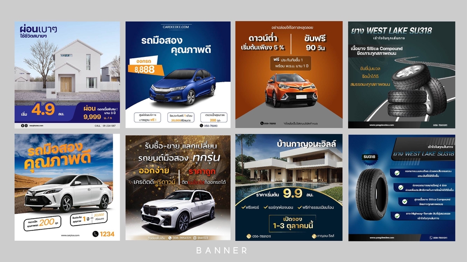 บริการออกแบบสื่อออนไลน์ BANNER ADS สำหรับ Social Media ทั้ง Online และ Offline ลูกค้าสามารถส่งตัวอย่างที่ต้องการมาเพื่อเป็นแนวทางสำหรับการออกแบบได้ สิ่งที่ลูกค้าต้องเตรียม 1.รูปแบบงาน Concept , โทนสี แนวทาง สไตล์ที่อยากได้ หรือภาพตัวอย่างถ้ามี 2.Logo Brand (.png หรือไฟล์ .ai ) (ถ้ามี) / ภาพสินค้า และนางแบบ ของลูกค้า (ถ้ามี) 3. ข้อความที่ต้องการให้ใส่ในงาน 4. ระบุขนาดงานหรือแพลตฟอร์มที่ลูกค้าต้องการนำไปใช้งาน เช่น Ads Facebook ขนาด 1200x1200 pixel ไฟล์งานที่ลูกค้าจะได้รับ PNG-JPEG หากลูกค้าต้องการไฟล์ Ai ไปแก้ไขเพิ่มเติม คิดเพิ่ม 300 บาท (หากแก้ไขเกิน 3 ครั้ง จะคิดค่าบริการเพิ่มครั้งละ 100 บาท) ขั้นตอนการทำงาน 1. รูปแบบงาน Concept , โทนสี แนวทาง สไตล์ที่อยากได้ หรือภาพตัวอย่างถ้ามี 2. Logo Brand (.png หรือไฟล์ .ai ) (ถ้ามี) / ภาพสินค้า และนางแบบ ของลูกค้า (ถ้ามี) 3. แจ้งข้อความหรือรายละเอียดที่ต้องการให้ใส่ในงาน 4. ระบุขนาดงานหรือแพลตฟอร์มที่ลูกค้าต้องการนำไปใช้งาน เช่น Ads Facebook ขนาด 1200x1200 pixel 5. ส่งงานครั้งแรก ลูกค้าสามารถแก้ไขไฟล์งานได้ไม่เกิน 3 ครั้ง 6. ระยะเวลาทำงานประมาณ 2-3 วัน ขึ้นอยู่กับความยากง่ายของงาน