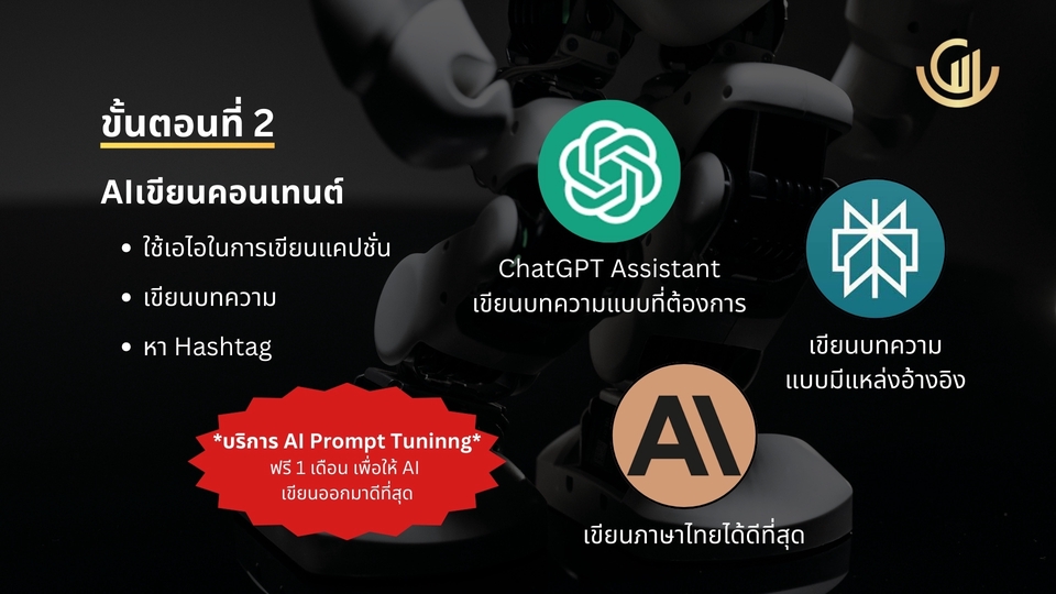 ยุคใหม่ของการทำคอนเทนต์! เบื่อมั้ย สมัยนี้อะไรๆ ก็ต้องทำคอนเทนต์. ให้ผมช่วยคุณประหยัดเวลามานั่งหาคอนเทนต์ นั่งโพสต์เองทุกวัน ด้วย AI Automation System AI Automation System for Social Media Content คือ ระบบการทำงานอัตโนมัติ ที่จะช่วยคุณค้นหาไอเดีย เขียนคอนเทนต์ และ โพสต์เองโดยอัตโนมัติ หน้าที่ของคุณมีแค่ อนุมัติการโพสต์เท่านั้น ซึ่งผมจะออกแบบระบบนี้ให้กับธุรกิจของคุณโดยเฉพาะ เพื่อให้คุณได้คอนเทนต์ที่ตอบโจทย์ ระบบการทำงานที่เหมาะสม และ สไตล์การเขียนในแบบที่คุณต้องการ ขั้นตอนการทำงานร่วมกัน: 1. พูดคุยเกี่ยวกับธุรกิจของคุณ และ ออกแบบแผนคอนเทนต์ที่ต้องการ 2. สร้างระบบ AI Automation - สร้าง Chat GPT Assistant / Prompt Engineering / Photo Template 3. Test ระบบ และ คอนเทนต์ที่ออกมา + ดูแลและแก้ไขได้ตลอด 1 เดือน สมัยนี้ การสร้างแบรนด์ และ การทำการตลาดออนไลน์ เป็นสิ่งที่หลีกเลี่ยงไม่ได้. AI Automation จะเป็นเครื่องมือให้คุณประหยัดงบประมาณ และ เวลา สำหรับผู้ประกอบการที่ต้องการเริ่มต้นสร้างตัวตนบนโลกออนไลน์ แต่ไม่รู้จะทำยังไง ลองทักมาสอบถาม และ ปรึกษาแผนการทำคอนเทนต์ก่อนได้เลยครับ ขั้นตอนการทำงาน 1. พูดคุยเกี่ยวกับธุรกิจของคุณ และ ออกแบบแผนคอนเทนต์ที่ต้องการ 2. สร้างระบบ AI Automation - สร้าง Chat GPT Assistant / Prompt Engineering / Photo Template ภายใน 7 วัน 3. Test ระบบ และ คอนเทนต์ที่ออกมา + ดูแลและแก้ไขได้ตลอด 1 เดือน