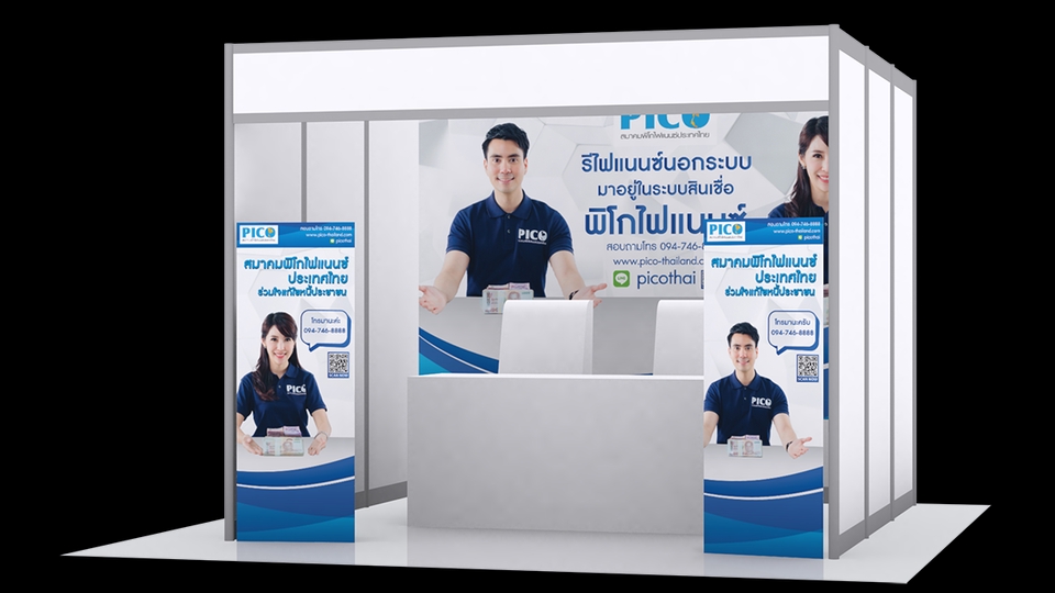 งานออกแบบ Booth Design, Counter Display, Production Design, Booth Exhibition, แบบงานสามารถส่งต่อผู้ผลิตได้ทันที หากต้องการให้ควบคุมการผลิต ติดตั้ง สามารถตกลงได้ ลูกค้าส่งตัวอย่างงาน รายละเอียด ส่งงานครั้งที่ 1 ส่งงานครั้งที่ 2 ส่งงานครั้งที่ 3 จบงาน