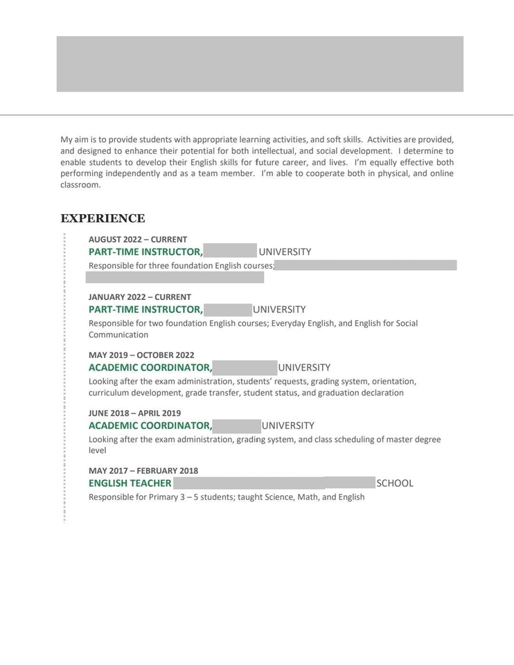 (Thai) Resume & Cover Letter