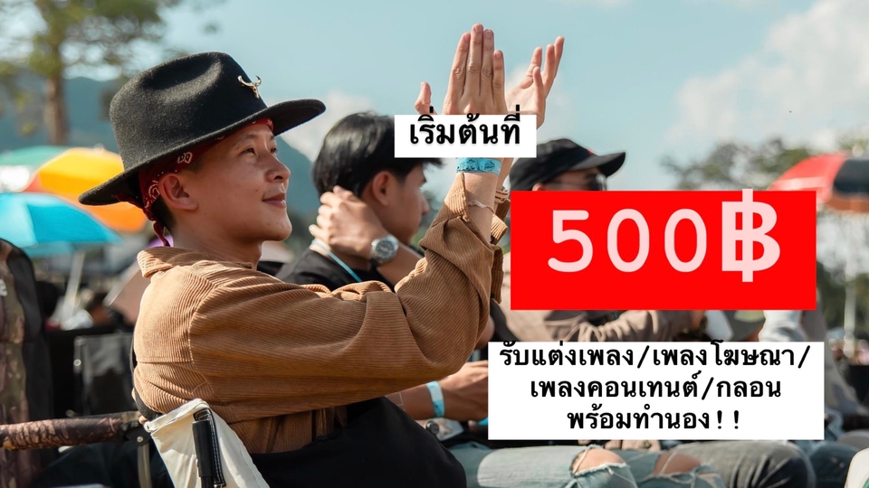 ฿3,000เพงลูกทุ่ง/เพื่อชีวิต/ลูกกรุง/สตริง/อินดี้ (ภาษากลาง/อีสาน/ใต้) ความยาว 3-5 นาที (1)ระยะเวลาดำเนินการ1-5วัน หรือน้อยกว่า