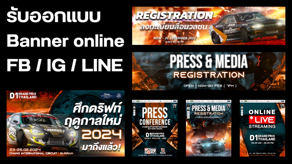 ประสบการณ์ในการออกแบบกราฟิกภาพนิ่งและเคลื่อนไหว Banner สื่อออนไลน์ 2 ปี มีประสบการณ์ ในการทำกราฟิก สไตล์ Racing และ สินค้าโฆษณา ขั้นตอนการทำงาน 1. ลูกค้าแจ้งความต้องการ - แจ้งแนวรูปแบบที่อยากได้ เช่น เรียบหรู น่ารัก (ส่งตัวอย่างมาได้ครับ ) - แจ้งรายละเอียด ขนาด สี สโลแกน ราคา ช่องทางติดต่อ **สิ่งที่ลูกค้าต้องเตรียม** - โลโก้ เช่น โลโก้แบรนด์ โลโก้อื่นๆ (ถ้ามี) - ภาพที่จะใช้ เช่น นางแบบ สินค้า สถานที่ ภาพอื่น (ถ้ามี) - ข้อความที่ต้องการใส่ในภาพทั้งหมด 2. หลังจากบรีฟงานและชำระค่าบริการเรียบร้อย 3. ได้งานครั้บแรกภายใน 2-3 วัน 4. ลูกค้าเลือก 1 แบบเพื่อแก้ไข สามารถแก้ไขงานจากแบบที่ส่งให้ได้ 3 ครั้ง 5. แก้ไขแบบจนเสร็จสิ้น ส่งงานให้ลูกค้า *ถ้ามีการปรับไซส์ + เพิ่ม 100 บาท (เช่น จาก 1040x1040 เป็น 1080x1920) ขั้นตอนการทำงาน 1. รับบรีฟขอมูลความต้องการกับลูกค้า 2. คุยปรับแก้บรีฟและเสนอสิ้งที่ที่ลูกค้าต้องเตรียมมาให้ 3. ออกแบบจัดทำชิ้นงาน 2 ชิ้นงานให้ลูกค้าเลือก 4. ให้ลูกค้าเลือกและจัดการแก้ชิ้นงาน 3 ครั้ง 5. เสร็จสิ้นการส่งงาน ชิ้นสุดท้าย