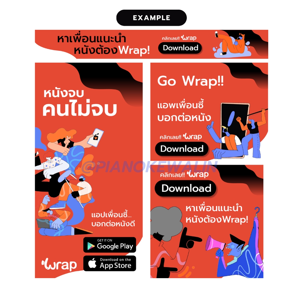 วาดภาพประกอบสไตล์กราฟฟิก ใช้สำหรับ ADSโฆษณา Banner ต่างๆ หรือลงบน Social Media หากลูกค้าสนใจสไตล์งาน มีเเบบในใจเเล้วสามารถทักมาสอบถามกันได้นะคะ 1. Brief : รับบรีฟจากคุณลูกค้า Reference ข้อมูลอื่นๆจากลูกค้า จะทำให้งานตรงเป้าหมายยิ่งขึ้นค่ะ 2. หลังจากคุณลูกค้าบรีฟเสร็จ จะดำเนินการต่อ เเละส่งชิ้นงานเสร็จสมบูรณ์ให้ค่ะ ขั้นตอนการทำงาน 1. Brief : รับบรีฟจากลูกค้า Reference ข้อมูลอื่นๆ คุยรายละเอียด ความต้องการของลูกค้า และภาพรวมของชิ้นงานทั้งหมดอย่างชัดเจน 2. ดำเนินงานตามระยะเวลาที่วางไว้ ส่งเเบบร่างคร่าวๆให้ลูกค้าเช็ค 3. ส่งงานฉบับสมบรูณ์