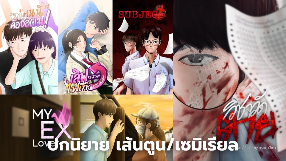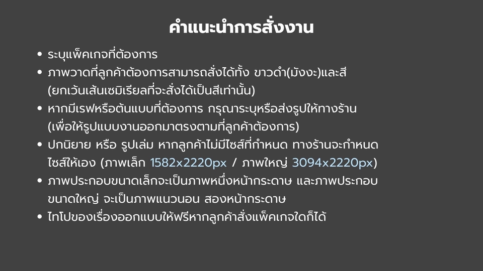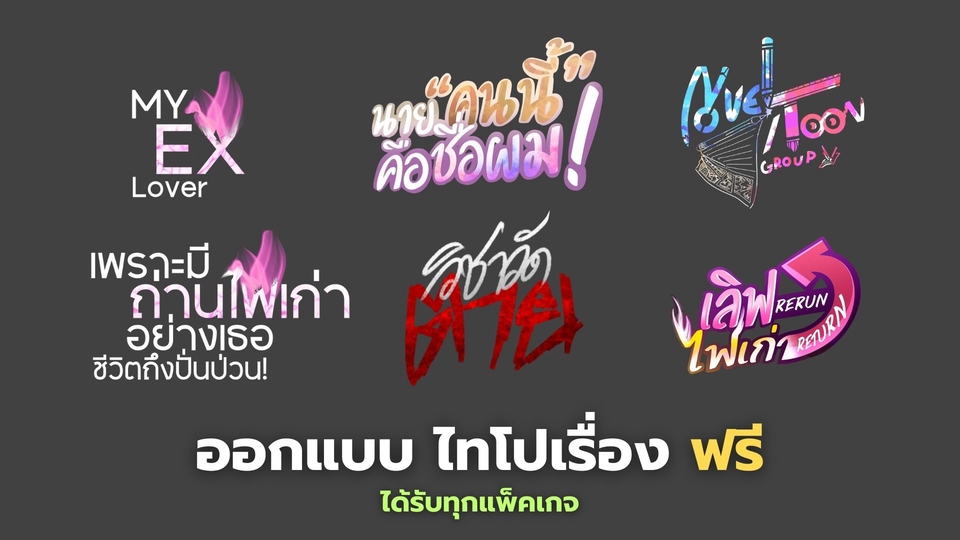 ฿1,000- ภาพปกเต็ม 1 ภาพ - ภาพพื้นหลัง 1 ภาพ - ภาพตัวละคร(ถ้ามี) 1 ภาพ - ไทโปรูปแบบ PNG