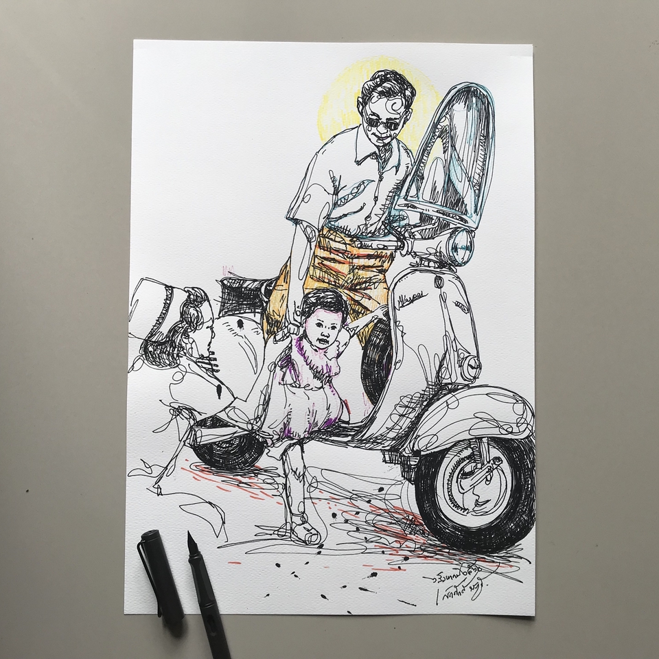 ภาพวาดลายเส้นมันๆ สนุกๆ ที่มีความเฉพาะตัวสูงมาก ภาพที่จะสะท้อนบางอย่างที่อาจสะเทือนอารมณ์ของผู้คน รายละเอียดราคาเพิ่มเติม ผลงานเป็นการวาดด้วยมือ บนกระดาษร้อยปอนด์ วาดเส้นด้วยปากกาดำ และลงสี ในแบบเฉพาะตัว เพราะอย่างนั้น ควรให้แน่ใจว่า ต้องการได้ผลงานในแบบของเรา ขอบคุณสำหรับท่านที่สนใจครับ ขั้นตอนการทำงาน 1. สนใจส่งรูปมาให้เราวาดให้ ในแบบของเราได้ 2. ประเมิณราคาให้หลังจากได้รับภาพตัวอย่างแล้ว 3. ราคาคร่าวๆ ขนาด A4 เริ่ม 1500 บาท | ขนาดภาพ A3 เริ่ม 3000 บาท 4. หลังจากคิดราคาแล้ว ส่งภาพให้เราได้เลย 5. ระยะเวลาในการทำงาน ราว 7-10 วันหลังโอน 6. ส่งผลงานให้ดูก่อน ส่งผลงานจริง (และ เนื่องจากเป็นงานวาดมือ จึงไม่สามารถ แก้ไขได้) เพราะอย่างนั้น อยากให้ทางลูกค้ามั่นใจว่า อยากให้เราวาดให้จริงๆ 7. แพ็คผลงานให้อย่างดี และส่งผลงานให้ถึงมือตามช่องทางการส่งต่างๆ ขอบคุณมากครับ