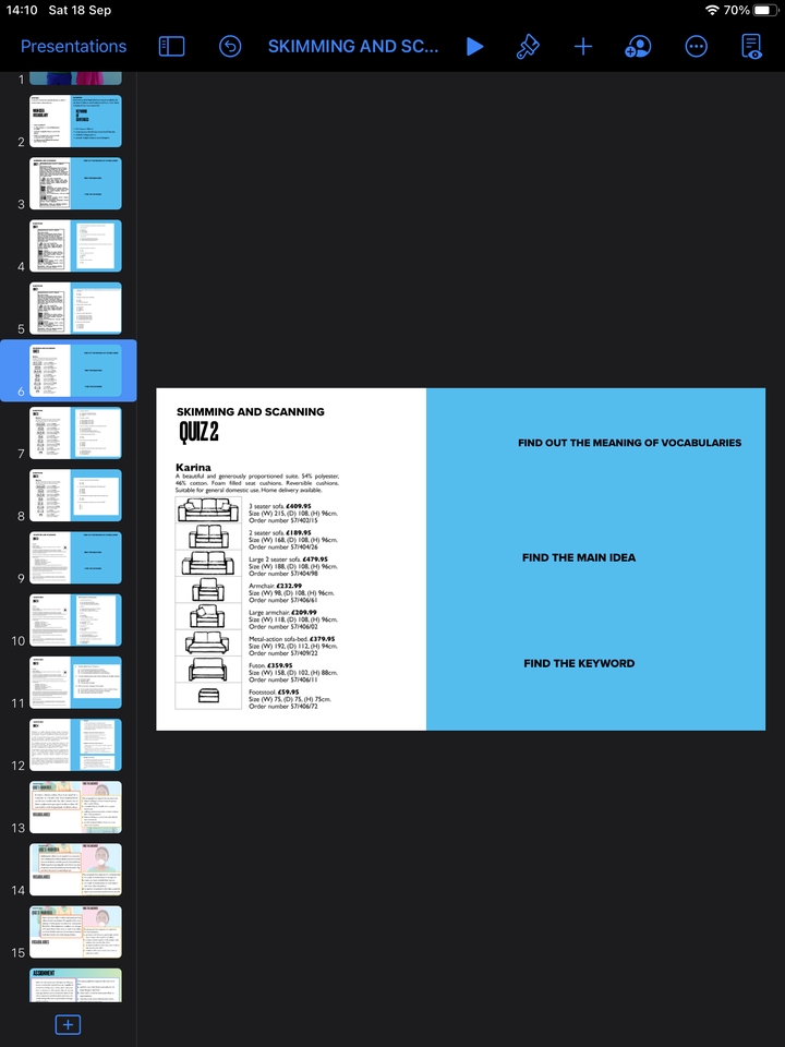ืจัดทำสไลด์นำเสนอและสื่อการสอนทุกวิชา ทั้งนี้ลูกค้าจะได้รับไฟล์ประกอบการนำเสนอ หรือสื่อการสอนเป็นสกุล .pdf .docx ด้วยค่ะ สามารถแก้ไขงานได้ไม่จำกัด จนถึงกำหนดวันส่งงานค่ะ ขั้นตอนการทำงาน 1. ลูกค้าแจ้งงานพร้อมรายละเอียด เช่น เนื้อหา ฟ้อนท์ ขนาดตัวอักษร โทนสี จำนวนสไลด์ที่ต้องการ เป็นต้น 2. ทางผู้จัดทำจะใช้โปรแกรม Keynote และ Powerpoint ในการจัดทำสไลด์นำเสนอ 3. ลูกค้าแจ้งกำหนดส่งงาน หากเป็นงานด่วนรบกวนระบุค่ะ 4. จัดทำใบเสนอราคา 5. ทางผู้จัดทำจะส่งความคืบหน้าของงานเป็น 30% 50% และ 80% ตามลำดับ เมื่องานสมบูรณ์ จะส่งให้ลูกค้าดับเบิ้ลเช็คงานอีกครั้ง 6. ลูกค้าสามารถรับเนื้อหาการนำเสนอ หรือสื่อการสอนเป็นสกุลไฟล์ Pdf. และ Docx. ได้ค่ะ